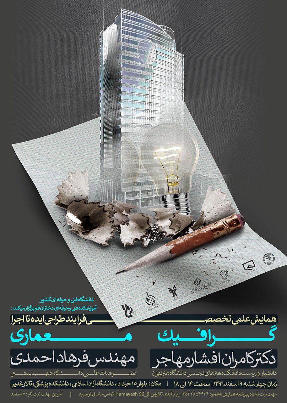 در این همایش که روز چهارشنبه ٩اسفند 1396برگزار می شود، كامران افشار مهاجر و فرهاد احمدی عضو هيات علمی دانشگاه شهيد بهشتی در باره روش طراحی ايده تا اجرا در گرافيك محيطی و بررسي فرآيندهاي ذهنی و عملی طراحی و ساخت در معماری و پرداختن به پروژه های اجراي شهری  سخنرانی خواهند کرد.