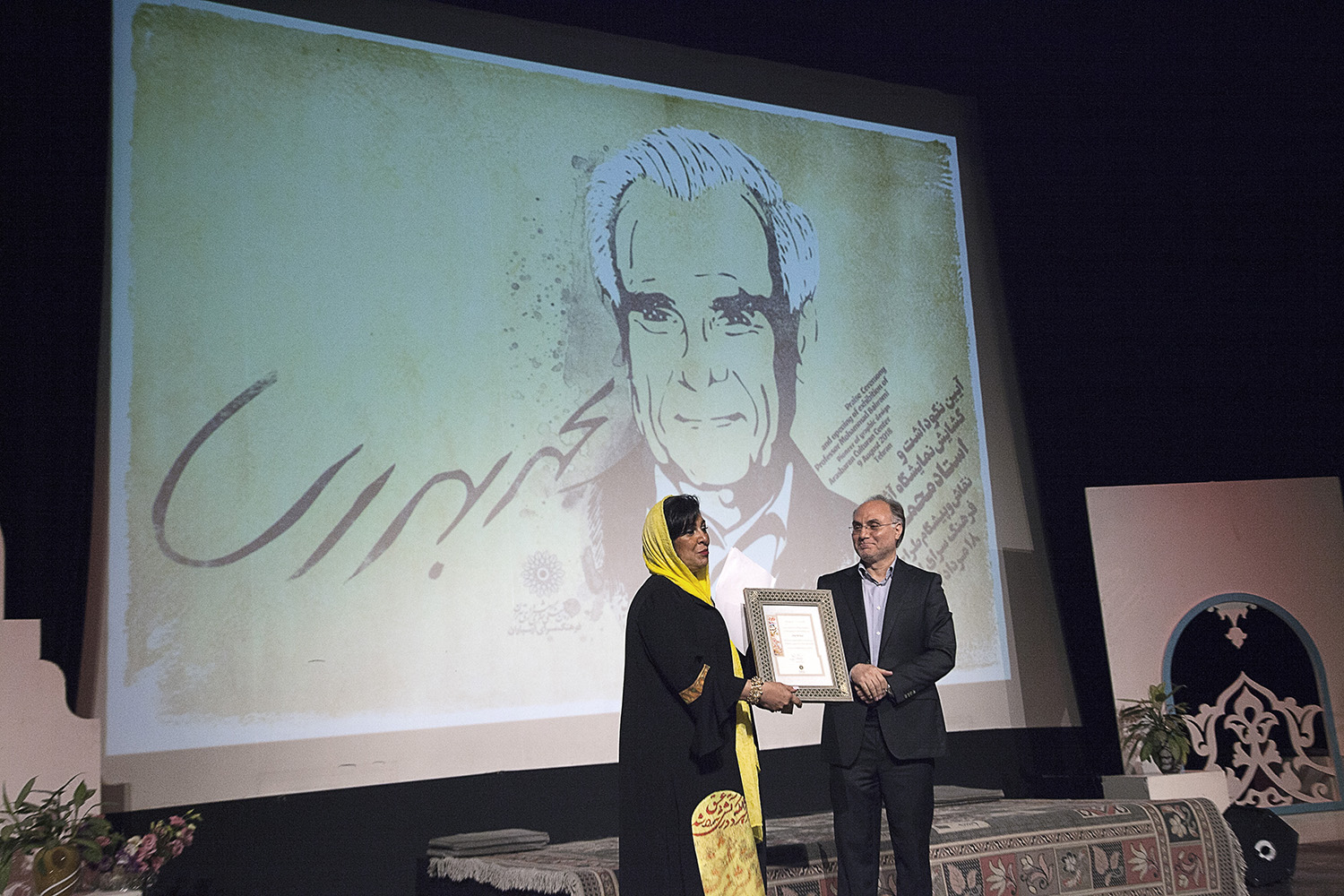 سپس به پاس قدردانی از زحمات لیلی خالصی همسر استاد بهرامی لوحی به رسم یادبود از سوی مدیر فرهنگی هنری منطقه ۳ به وی تقدیم شد.