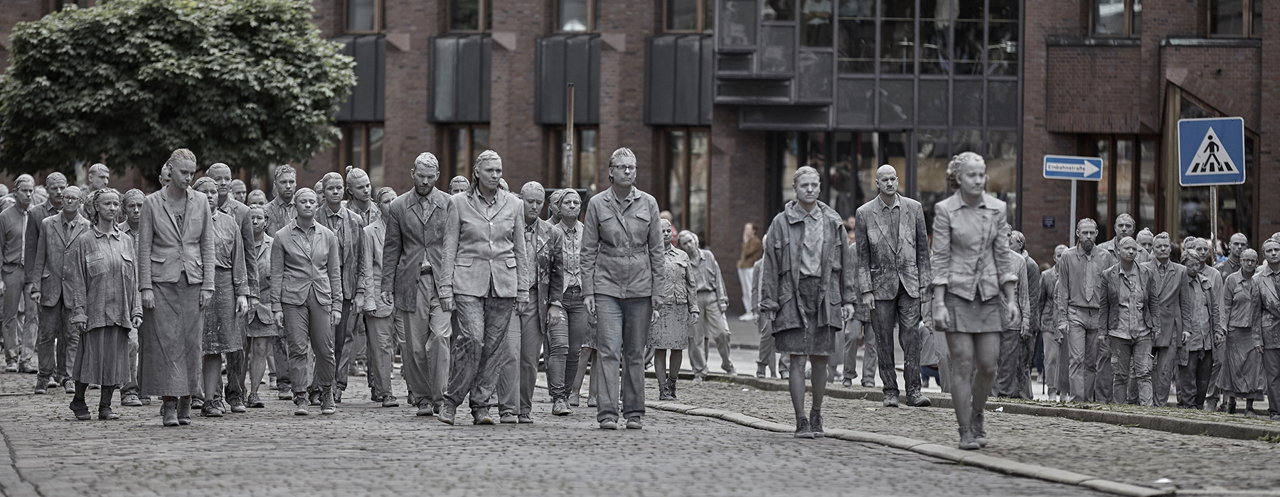 همزمان با برگزاری اجلاس G20 در شهر هامبورگ المان،  1000 نفر که خود را آغشته به گِل کرده بودند، در 5 جولای 2017،در خیابان های هامبورگ نمایان شدند و بی صدا به برنامه های این اجلاس نسبت به به جهانی سازی اعتراض نمودند. این اجرای دو ساعته که توسط گروهی محلی ساماندهی شد  از آلمان و جهان درخواست کرد تا برای بشریت و یگانگی بهتر در این زمان های دشوار فکری کنند.