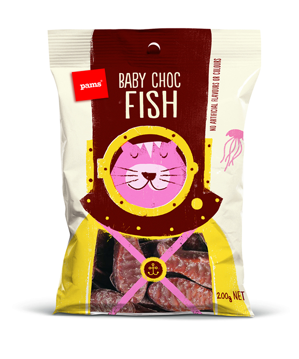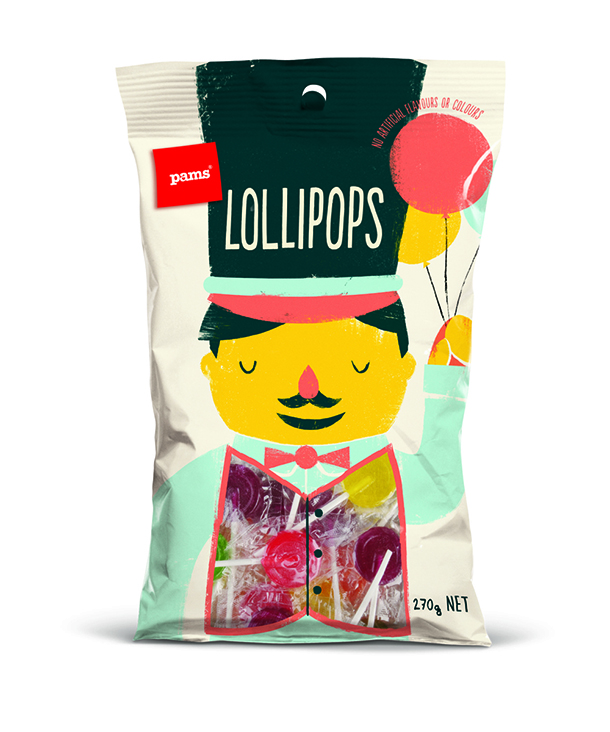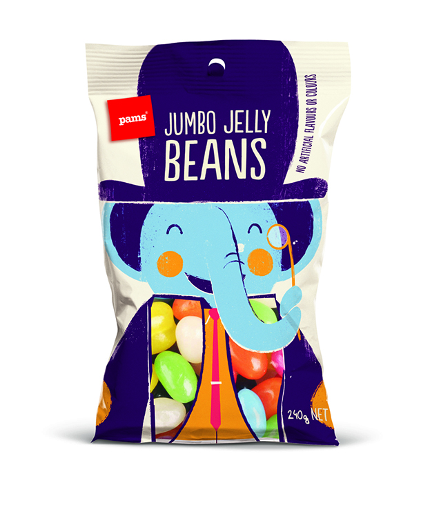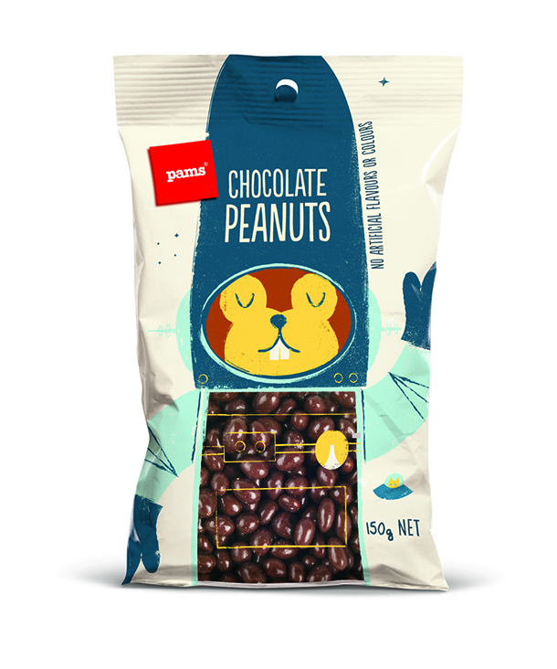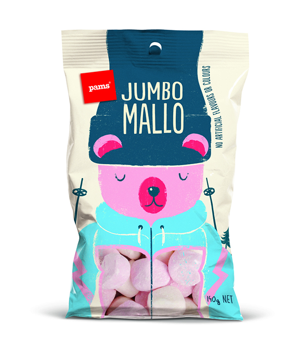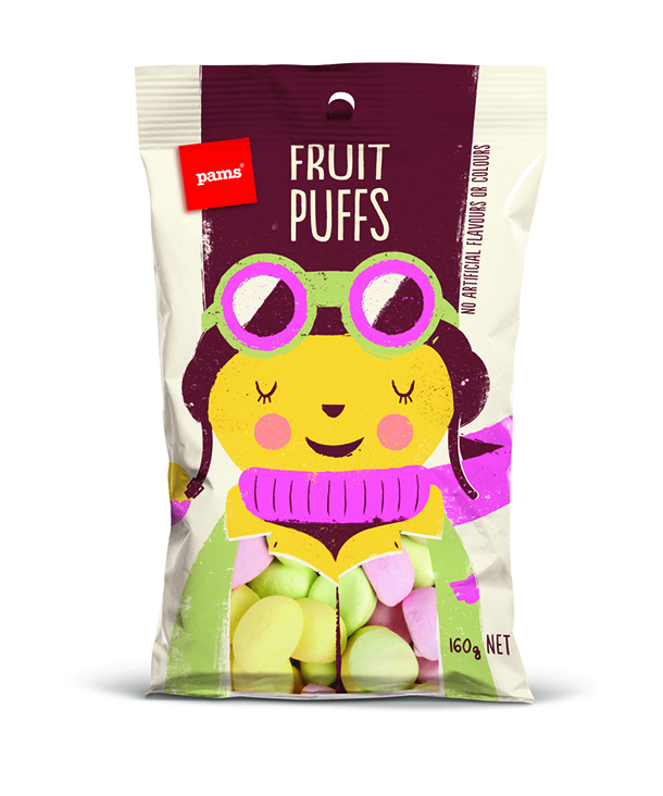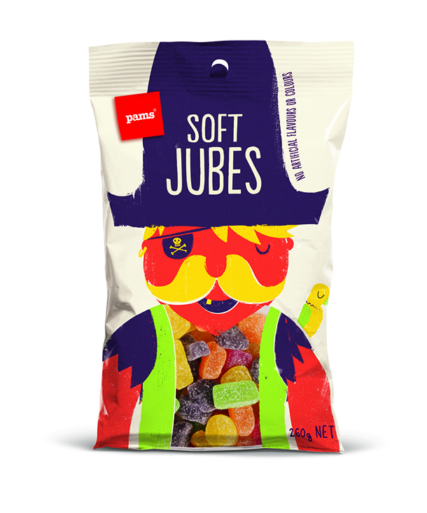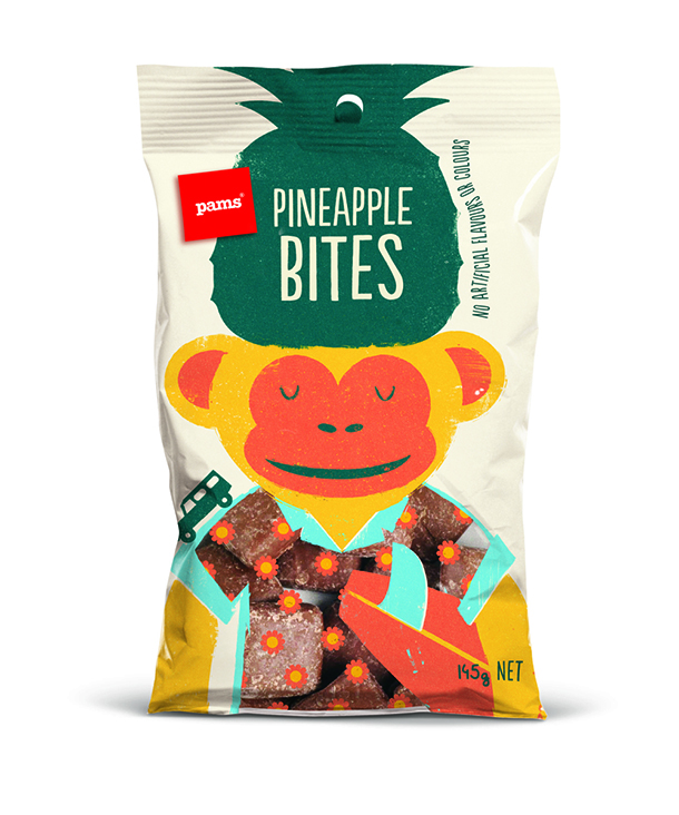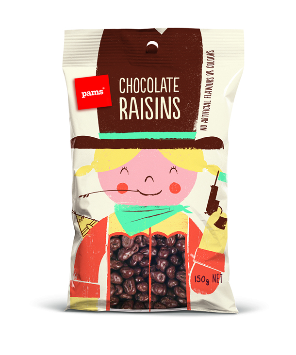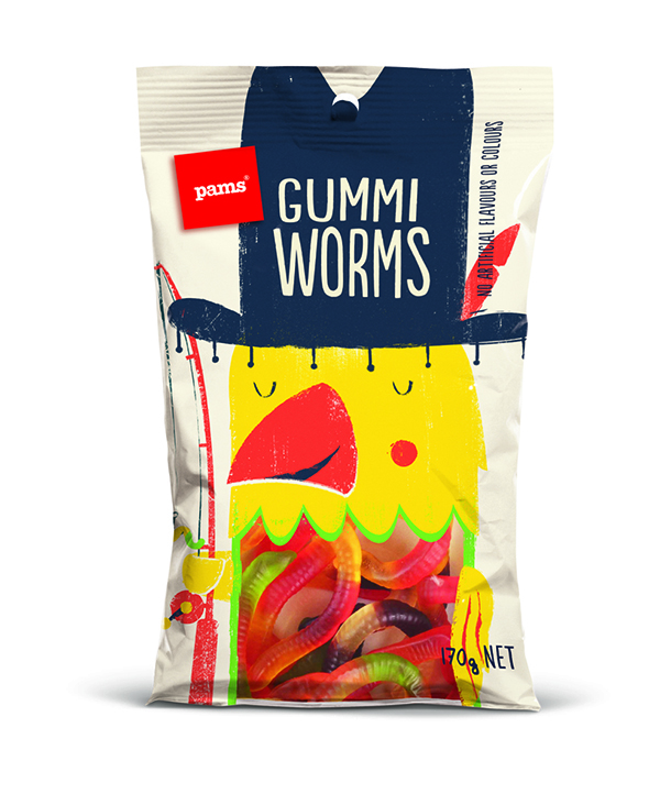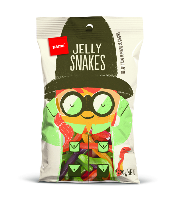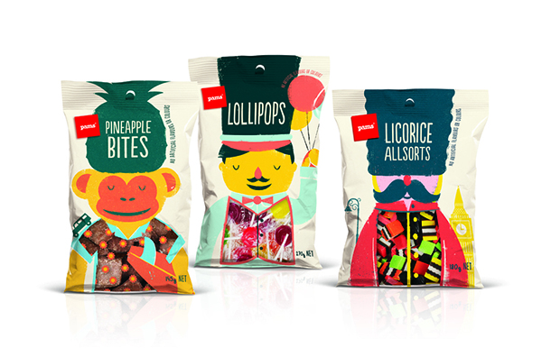 شیرینی پزی نیوزلندی پمز(The Pams) در بسته بندی‌های تازه خود با استفاده از شخصیت‌های جذاب و خنده دار سعی کرده تا نگاه‌ها را مجذوب خود کند و خنده را بر لبان مخاطبان بنشاند. این بسته‌بندی‌ها توسط هنرمند با استعداد، برت کینگ(Brett King) به سبکی ساده طراحی شده‌اند و عنوان کلی همه آن‌ها این است: «نگاه کن و احساس کن». هر کاراکتر، هوشمندانه محتویات خود را با جزییات کمی تعریف کرده است تا مشتری، خود ادامه ماجرا را حدس بزند.