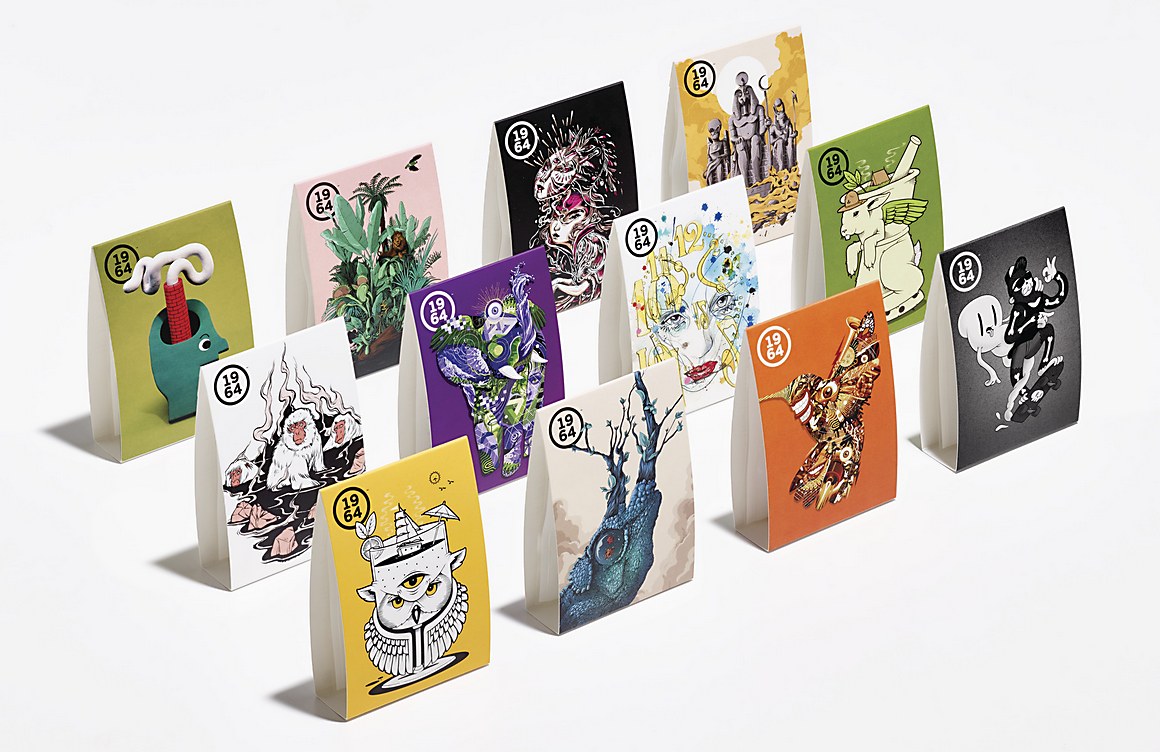 شرکت Supply1964 یک برند تولید کننده انواع دخانیات است برای برندسازی و بسته بندی های خود به دنبال ایجاد یک تازگی بود. بنابراین به کمک آژانس تبلیغاتی Twenty Three West واقع در ونکوور 9 هنرمند را از سراسر جهان به خدمت گرفت و نمونههایی از دوازده نوع از محصولات را به این افراد فرستاد و از همه خواست تا از محصول استفاده کنند و سپس احساس تغییر شکل در سبک فردی شان را تعبیر کنند. نتیجه، یک سیستم بسته بندی با قابلیت شناسایی طعم شد که هنر منحصربهفرد آن در این است که به مشتریان در درک نوع طعم هر محصول کمک میکند تا بدانند کدام یک برایشان مناسب است.