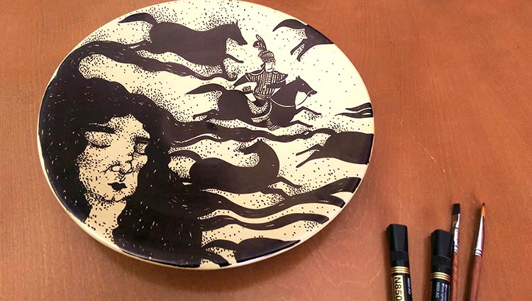 « تمام تلاشم در مجموعه پیش رو وارد کردن هنر به زندگی عامه مردم بوده تا به این مناسبت، کم کم سطح سلیقه و نوع نگاه شان ارتقا پیدا کند. آثاري که صرفا تزیینی نبوده، از نظر قیمت درصد زیادی از مردم توان خریدش را داشته تا مراوده بیشتری با هنر در زندگی روزمره پیدا کنند. در نهایت اینکه با توجه به ضعف هاي صنعت نشر کشورمان، دوست داشتم تصویرسازی هایم جایی برای خود پیدا کنند و بالاخره بشقاب را به عنوان بستر اصلی کارهایم انتخاب کردم.