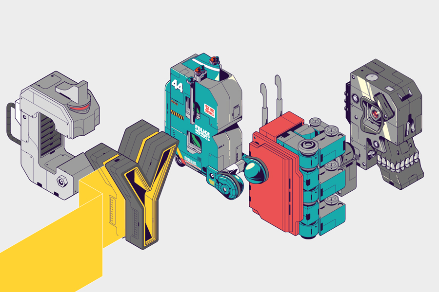 ایده اولیه به این صورت بود که گابریل هر کدام از حروف کلمه CYBER را به صورت یکی از المانها یا شخصیتهای یک مجموعه فیلم و یا سریال که جزء محتویات جعبه باشد طراحی کند. مثلا پیشنهاد شد که حرف C را به صورت یکی از روبوتهای سریال Battlestar Galactica به نام Cylon طراحی کند و او با همین ایده اولیه شروع به کار کرد.