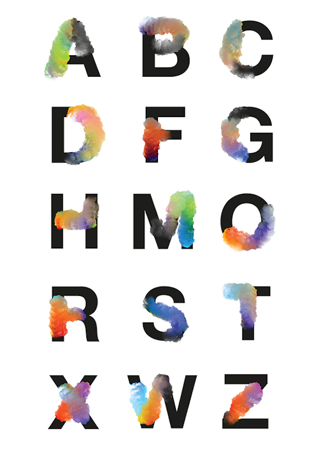طراح هلندی ژوزه برنابه “José Bernabé” یک الفبای ابری شیمی طراحی نموده که دندانهها و اتصالات حروف “San Serif” را در بعضى قسمتها با اضافه کردن ابرهاى رنگى، ديزاين كرده است. ژوزه با استفاده و به كارگيرى براشهای فوتوشاب توانست یک الگو “Pattern” ابری شکل با رنگ گذاری با ابزار گرادیانت “Gradiant” به وجود آورد.
