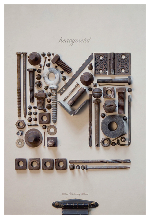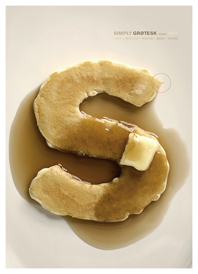 مجموعه ای جالب از حروف الفبا که با به کارگیری مواد و متریال های گوناگون طراحى شده است. این مجموعه تایپوگرافی توسط تام دیوی “Tom Davie” در استودیوی بیست و شش “Twentysix” خلق شده است. تام در این پروژه سعی کرده روابط بین حروف و فرمهای دیگر را شناسایی و آنها را بههم پیوند بزند. از طراحى حروف A و S به وسیله پنکیک، یک P در یک کتاب و بسیاری آثار دیگر که در تصاویر خواهید دید: