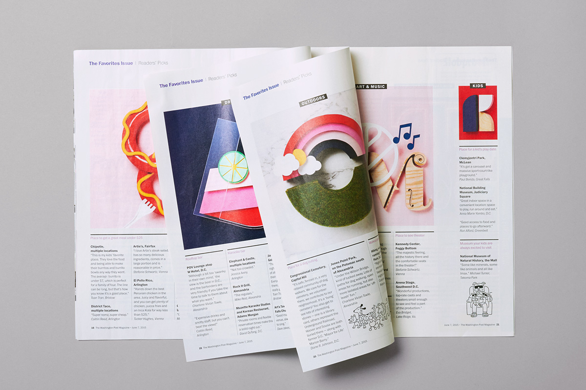 در یکی از پروژههای اخیر این استودیو، مجله واشنگتن پست سفارشی اختصاصی برای تصویرسازی چند صفحه در داخل مجله به آنها داده بود. آنها خواهان موضوعات و تولیدات سرگرم کننده و ملموس برای شماره مورد نظر مجله برای خوانندگان علاقمند خود بودند. SNASK برای این پروژه تصاویری را خلق کرد که همگی دست ساز بوده و با قلم مو رنگ آمیزی شدهاند. هر یک از حروف، نشان از یک گروه خاص دارد و تبدیل به یک نماد میشود.