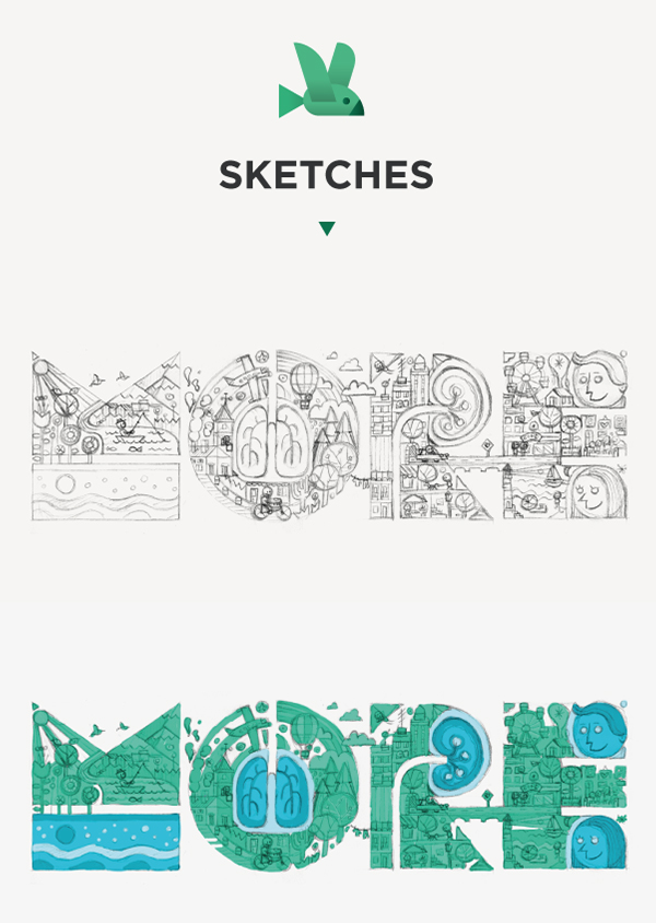 MORE عنوان پروژهای است که ماکو سوسا (Mauco Sosa) تصویرگر اسپانیايى آن را طراحی و اجرا کرده است. او بیش از 12 سال است که در هنرهای تجسمی و زمینههایی چون مدیریت هنری و تصویرگری فعالیت میکند. این پروژه تبلیغاتی به سفارش یک مؤسسه علوم پزشکی در نیویورک در جهت معرفی و عرضه یک دارو برای درمان و مقابله با سرطان صورت گرفته است. هدف اصلی آن، بالا بردن شناخت بیماران به درک بهتر جنبههای مختلف زندگی با استفاده از این دارو بوده است. در این پروژه، تأکید ویژهای در بهکارگیری از تصویرسازی شده است. شاخصه این پروژه، به تصویر کشیدن تفریحات و لحظات شاد زندگی بر روی ساختار اصلی 4 حرف کلمه MORE است و همچنین 4 عضو از بدن که این دارو بر آنها اثر دارد . همانطور که در اتودها میبینید، با وجود ترکیببندیهای پیچیده و پر از فرم، سعی شده است که از تمام فضای هر حرف در نمایش اتفاقات به خوبی استفاده شود. تکنیک اجرایی نیز به طوری است که باعث ایجاد هماهنگی و انسجام در کل اثر شده و از شدت پیچیدگی ترکیببندیها کاسته است. در ادامه، همراه روزرنگ باشید تا اتودها، مراحل اجرایی و جزییات بیشتری از تصویر نهایی پروژه را ببینیم: