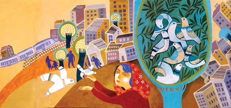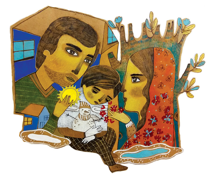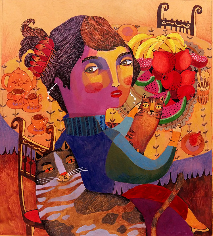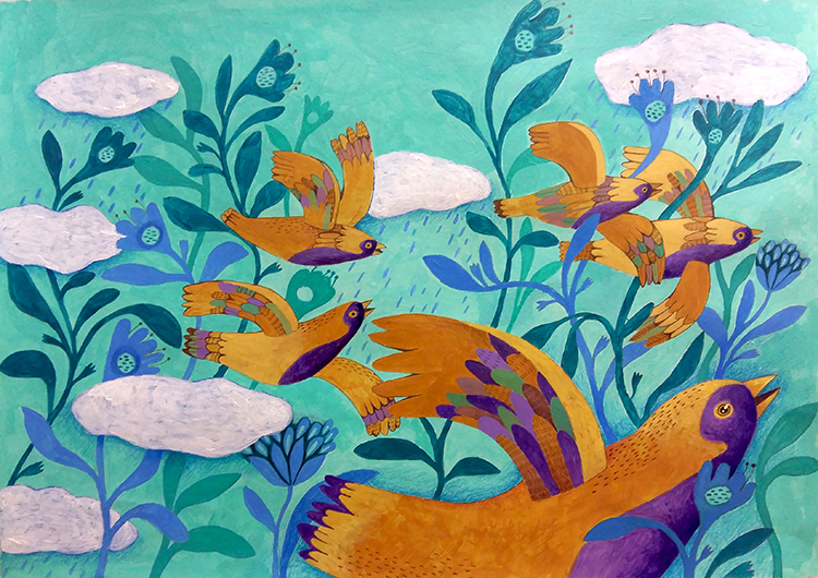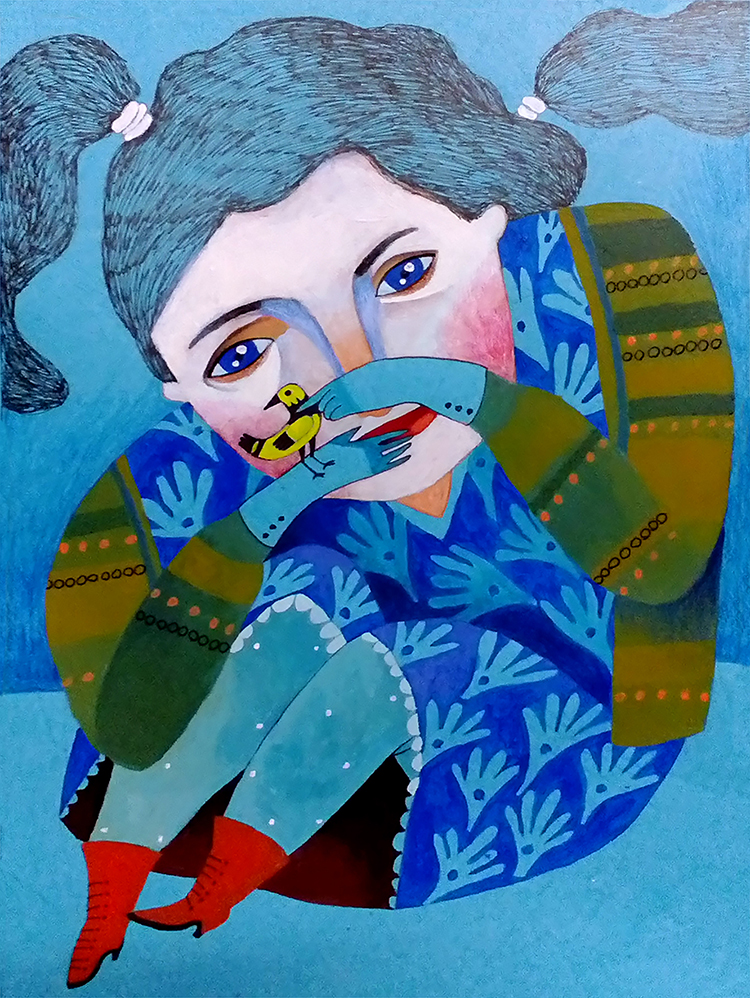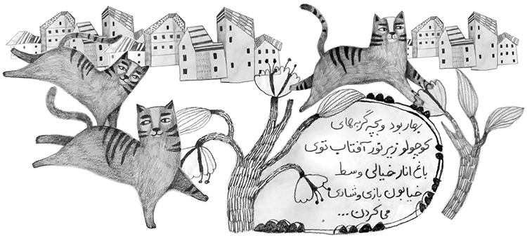 معمولا ایدههای اولیه تصویرگری هایم در یک لحظه به ذهنم میرسند. ممکن است در جایی شلوغ و پر ازدحام باشم یا در حال خرید کردن یا سوار تاکسی و مترو باشم یا اینکه در اتاقم مشغول کتاب خواندن . در یک آن ایده ای به ذهنم میرسد و در اولین فرصت، اتود اولیه را روی کاغذ پیاده و کم کم با تغییرات کمی، تکمیلش میکنم و در نهایت، اجرای رنگی را شروع میکنم.