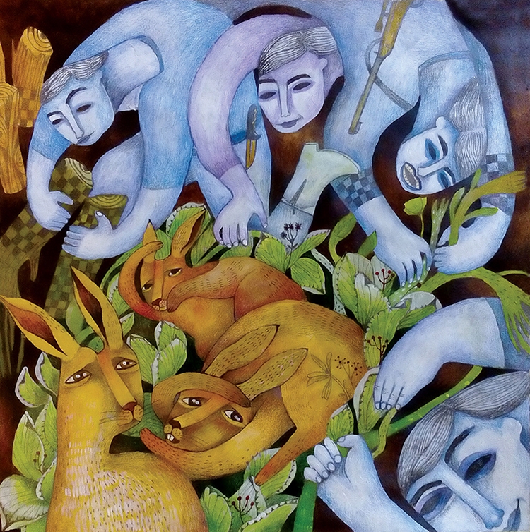 در هنگام خلق یک اثر همیشه سعی کردم به هویت هنری و تکنیکی و داشته های ذهنی و تجسمی خودم رجوع کنم ولی مسلما هر تصویرگری در آرشیو ذهنی خود مجموعهای تصویری از آثار هنرمندان مختلف دارد که میتوانند در ایدهپردازی یک تصویرگر تاثیر خیلی زیادی داشته باشند. »