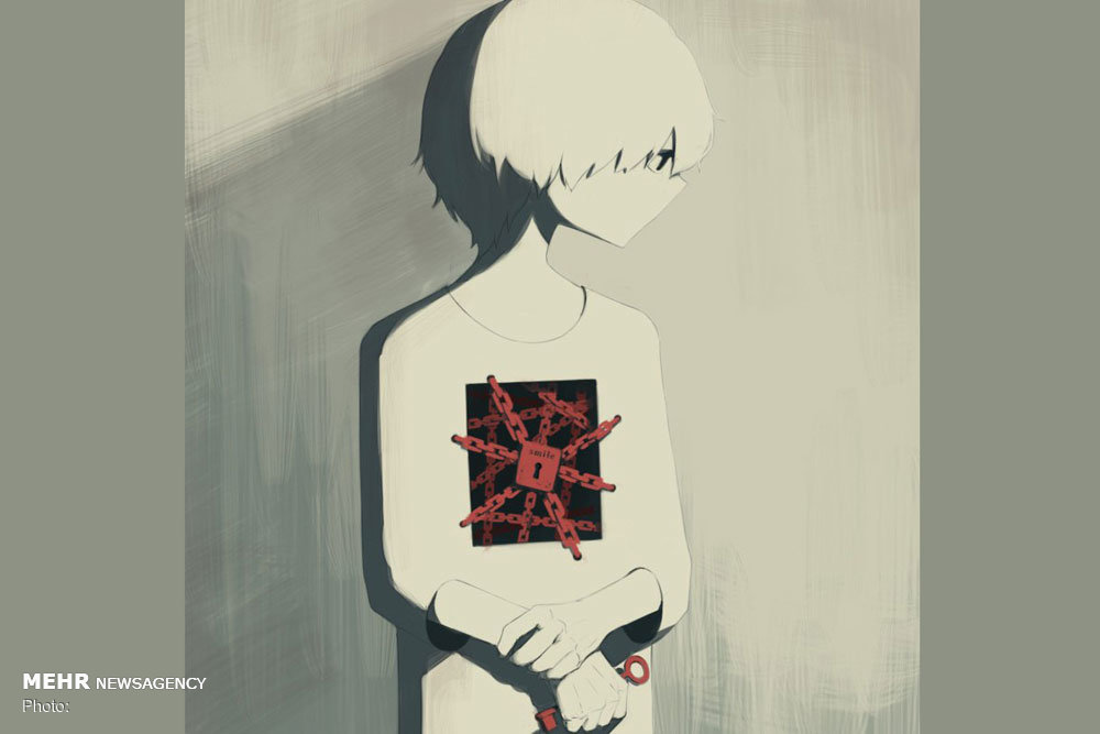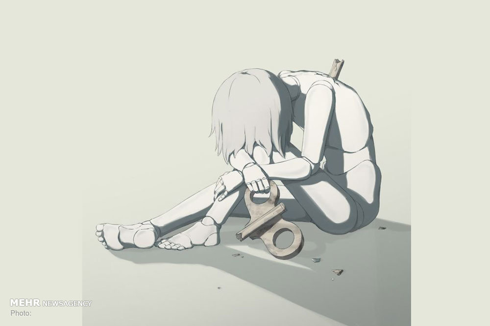 و یا حس شرم خجالت که یکی از شایعترین احساسات بشری است و هنرمند ژاپنی با هنر خود این حس را همچون قفلی بر سینه به بهترین شکل به تصویر کشیده است.