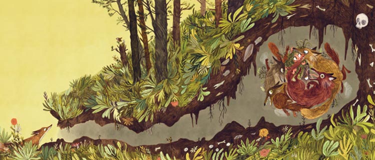 ” امیلی هیوز” Emily Hughes، نویسنده و تصویرگر، دوران نوجوانی خود را در هاوایی گذراند و در حال حاضر در بریتانیا ساکن و مشغول کار است. کتابهای تصویری او به طور گسترده در جهان منتشر و شناخته شده اند. سال ۲۰۱۵ ، امیلی به عنوان نماینده بریتانیا در دوسالانه تصویرگری براتیسلاوا (BIB) حضور داشت. در پست امروز روزرنگ، او درباره خلق کتابی با عنوان ” وحشی” (Wild) صحبت میکند. این کتاب تصویری با تصاویر جسورانه یکی از اولین محصولات انتشارات Flying Eye Books در بریتانیا است که سال 2013به چاپ رسید. این کتاب تاکنون به زبانهای بسیاری از جمله اسپانیایی، فرانسوی و ایتالیایی منتشر شده است.