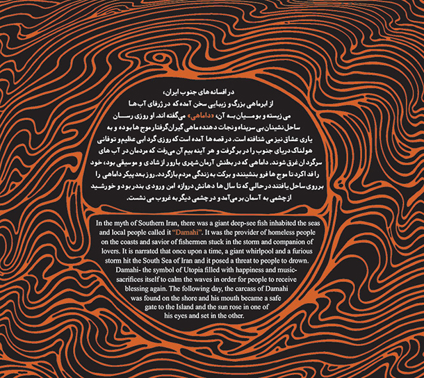 از طرف ديگر تلاش كردم نشانه نوشته داماهی هم مانند موجودی اسطوره ای باشد که در دل خود امید و شور و عشق و زندگی دارد.