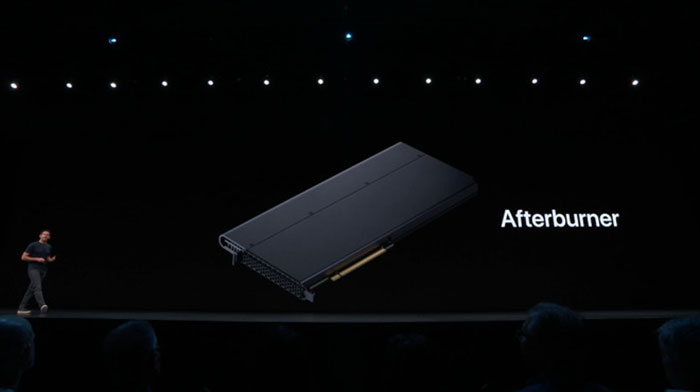 کارت Afterburner از تجهیزات جدیدی بود که اپل برای مک پرو جدید معرفی کرد. احتمالا بسیاری از کاربردهای این قطعهی جدید هنوز مشخص نیستند. برخی کاربران انتظار دارند که افتربرنر برای بهروزرسانیهای آتی مفید واقع شود.