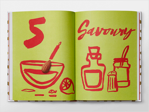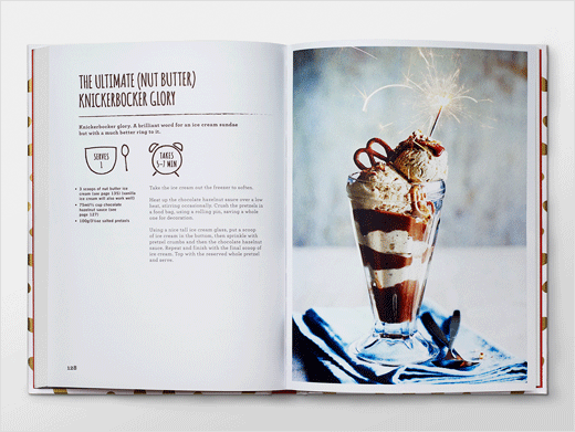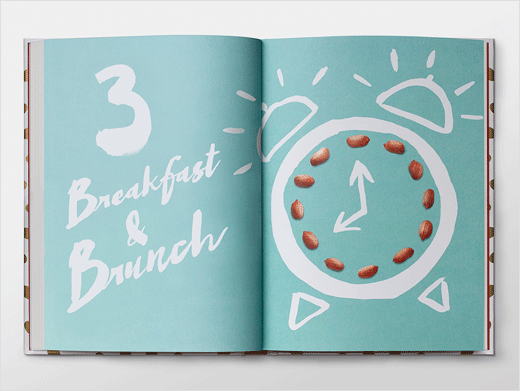 استودیو گرافیک B&B واقع در انگلستان برای کمپانی Pip & Nut تولید کننده کره بادام زمینی یک کتاب آشپزی طراحی کرده است که شامل تمام دستورالعمل های پخت غذا و شیرینی هایی که می توان با بادام زمینی یا مشتقات آن درست کرد می باشد. این دستورالعمل ها توسط موسس این کمپانی یعنی پیپا مورای (Pippa Murray) تهیه شده اند. این استودیو از سال 2015 با این برند تازه تاسیس در حال همکاری است که لوگوی آن را نیز طراحی کرده اند و حالا آنها موظف شده بودند تا یک کتاب آشپزی از صفحه آرایی، طرح روی جلد، آیکون ها، عکاسی و ارائه آن انجام دهند. شاون بوون (Shaun Bowen) مدیر هنری B&B در طور پروسه این پروژه سعی کرده است با همکاری مستقیم با افراد داخل این کمپانی، هویت و شخصیت این برند را درتک تک صفحات این کتاب القا کند.