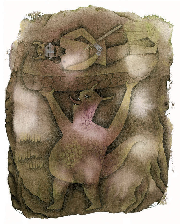 در ادامه‌ی مطلب، مجموعه‌ى تصويرسازى «رستم و اکوان‌دیو»  را خواهید دید که با تکنیک اکولین و مدادرنگی اجرا و بخش عمده‌ی آن، بداهه سازی شده است. این پروژه توسط سحر حق‌گو تصويرگر پرکار ايرانى طراحى شده است. سحر حق‌گو متولد۱۳۶۰ و دارای مدرک فوق‌لیسانس تصویرسازی‌ است. وی با نشریات و انتشارات متعددی همکاری‌ می‌کند. اين مجموعه‌ى اسطوره‌اى تخيلی با نيم نگاهى به فضاى نگارگرى ايران و آثار سلطان محمد و كمال الدین بهزاد تکمیل شده است. شایان ذکر است مجموعه‌ى «رستم و اکوان‌دیو» توسط انتشارات كانون پرورش فکری کودکان و نوجوانان چاپ و منتشر شده است.