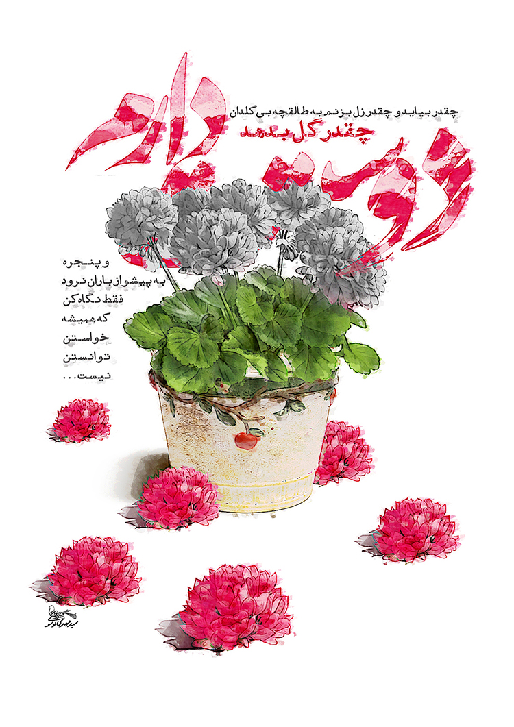 نخستین دست نوشتههای آدمی، نقاشی را به ذهن متبادر میکند و اولین زمزمههای او، یادآور شعر و ادبیات است؛ از همینرو میتوان نتیجه گرفت که پیوند این دو، پیشینهای به دیرینگی تاریخ بشر دارد؛ اما اينكه هنر نسبتا مدرنی چون طراحی گرافيك كه زايش خود را مرهون هنرهای تجسمی سنتی چون نقاشی در اعصار گذشته دارد، تا چه حد ميتواند راوی لحظات شاعرانه و دنيای واژههای آغشته به احساسات ناب يك اديب و شاعر باشد، چالش قابل توجهی براي هر طراح گرافيك امروزی محسوب ميشود و عرصه هنر گرافيك ايران از نقطه نظر پيشينه در اين زمينه، برای هنرمندان طراح نسل جوان جای كار قابل توجهی داشته و ايجاد خط موازی انديشه بين ادبيات منظوم و منثور و هنرهاي تجسمی به ويِژه هنر طراحی گرافيك براي بهره مندی علاقمندان خاص و همچنين ايجاد التذاذ عمومی برای مخاطب عام ، تلاشی مستمر همراه با نگاهی نو به ادبيات را ميطلبد.