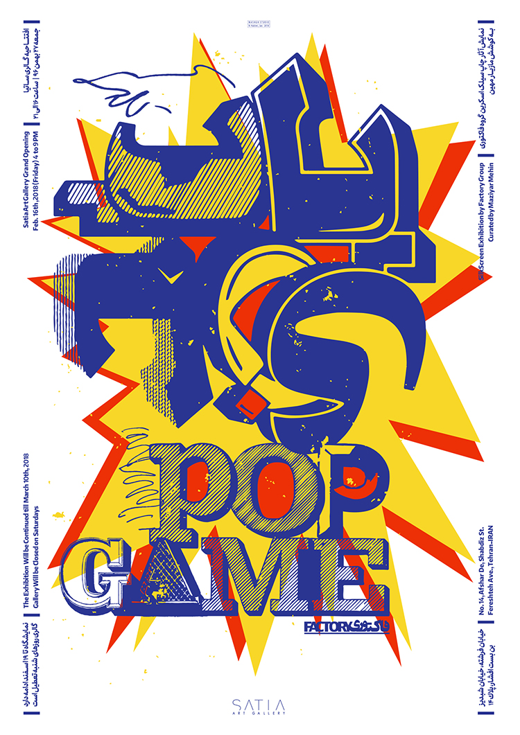 متنی که خواندید استيتمنت نمايشگاه پاپ بازى است، كه ٢٧ بهمن ١٣٩٦ در گالرى ساتيا و به بهانه افتتاح اين گالرى برگزار شده است. نمايش آثار چاپ سيلك اسكرين گروه ” فاكتورى “به كوشش ” مازيار مهين” در گالرى ساتيا تا ١٩ اسفند ادامه داشت.