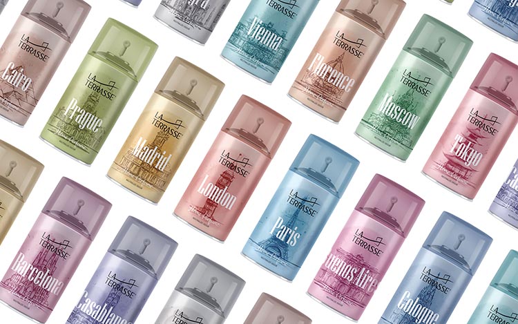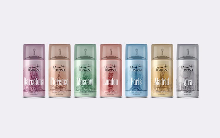 در فاز اول لاتراس با اسپریهای خوشبوکننده وارد بازار شد. ۲۴ رایحه متفاوت که نت های آن توسط تیم تحقیق و توسعه لاتراس آميخته شد. چالش بعدی ما رسیدن به یک استراتژی هدفمند برای طراحی بسته بندی ها بود که با جلسات متعدد به ایده ی شهرهای مشهور جهان رسیدیم. هر شهر هویت، ساختار و اتمسفر خاص خودش را دارد، مخصوصا معماری منحصر به فردی که با بناهای خاص، خود را به دنیا معرفی می کند؛ بنابراین هر کدام از رایحه ها را به یک شهر ارتباط دادیم و با این ایده لاتراس می تواند به گوشه گوشه ی دنیا سفر کند كه در ادامه به این ۲۴ رایحه اضافه خواهد شد و شهرهای بیشتری به این مجموعه خواهند پیوست.