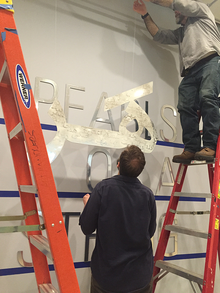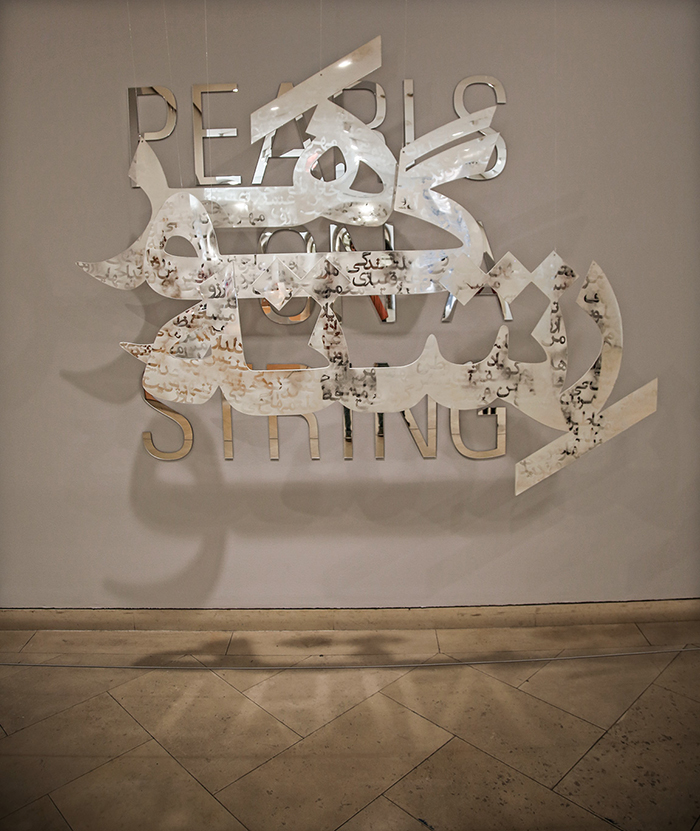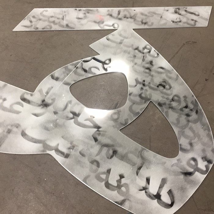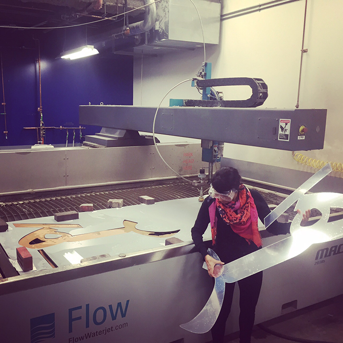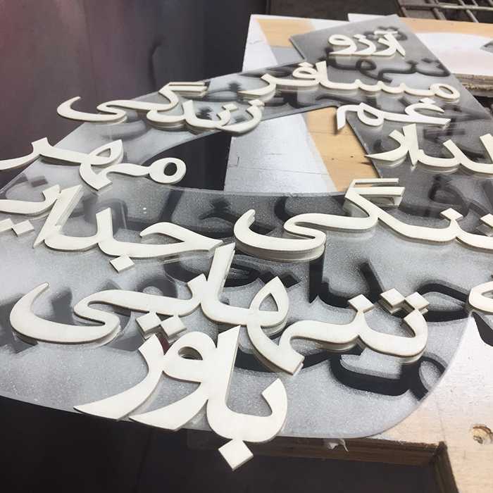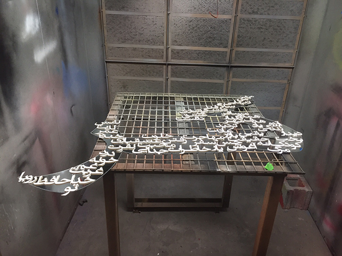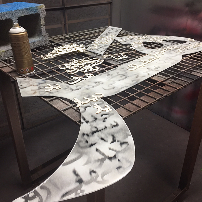 اين اولين تجربه جدى من در زمينه طراحى و اجراى يك اثر در مقياس بزرگ بود. در نتيجه اتمام كار سخت تر از آن چيزى بود كه انتظار داشتم و تا اجراى نهايى چندين بار مجبور به ساخت ماكت شدم. در مورد طراحى و نصب اثر با «پل دانیل» (Paul Daniel) مجسمه ساز و تيم نمايشگاهى موزه هم مشورت كردم و با كمك هاى بى دريغ تيم موزه كه از زمان ايده پردازى تا نصب نهايى كار بخصوص در زمان ساخت آرماتورى كه عنوان فارسی از آن آويزان بود ادامه داشت؛ اجراي پروژه را به پايان رساندم.