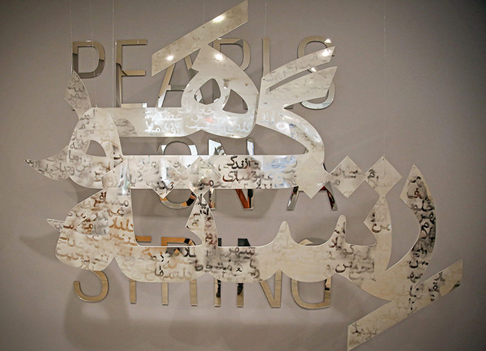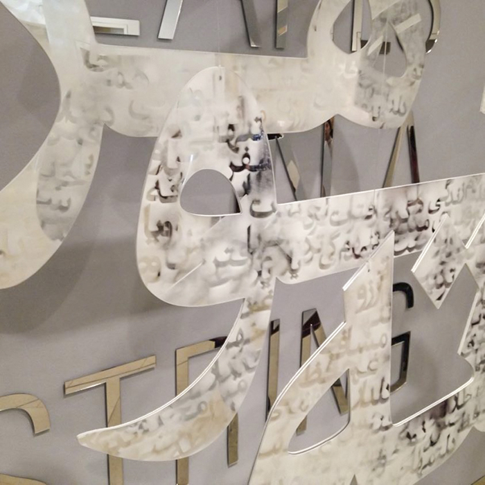 ايده اصلى برگرفته از موضوع نمايشگاه است كه فرديت و روابط انسانى را مورد توجه قرار مى دهد. جنبه انعكاسى آينه مخاطب را به بخشى از اثر تبديل مى كند و در واقع كامل كننده اثر مى شود. به اين صورت، مضمون ارتباط از طريق تركيب اصلى و آينه و در لابه لاى كلمات فارسى اتفاق مى افتد.