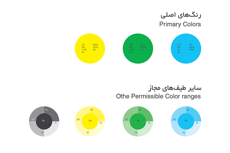 همانطور که میدانیم سبزی طبیعت، حاصل گرمای خورشید طلایی و آب و هوای آسمان آبی است و به همین منظور رنگ سبز کانسپت هویت بصری بهنور نیز از ترکیب رنگهای آبی و زرد ساخته شده است.»
