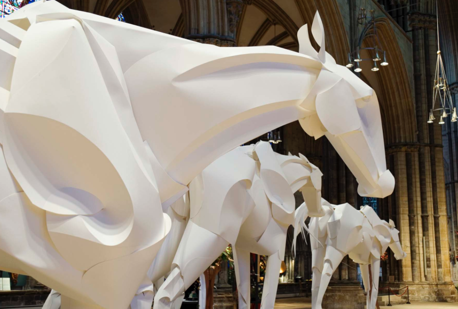 ریچارد سوینی (Richard Sweeney) هنرمند انگلیسی تبار، سازنده مجسمههای کاغذی چند تکهای است. این هنرمند در مرحله اول با یک خط کش و یک کاتر برای تا و سرهم کردن طرح میپردازد و سپس با خطِ تا های بهوجود آمده مجسمه را تکمیل میکند. در این آثار از چسب استفاده نشده است و همه با برشهای پیچیدهای درست شدهاند که بعضی اوقات به چند متر میرسند. با هم به تماشای این آثار مینشینیم: