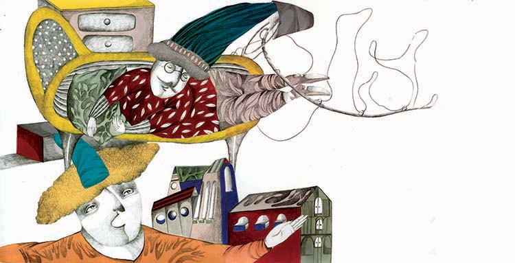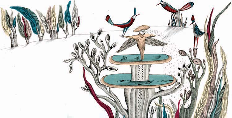 بیشتر مواقع شاید اتودی برای کتابهایم نزنم و کلیت کار را در پایان تصمیم میگیرم. برای شروع کار کتاب بیشتر جستجو میکنم و بعد طراحی. ترکیب بندی رنگی برایم بسیار مهم است و بیشتر رنگهای انتخابی من خاموش هستند مگردر مواقعی که احتیاج به تاکید باشد.