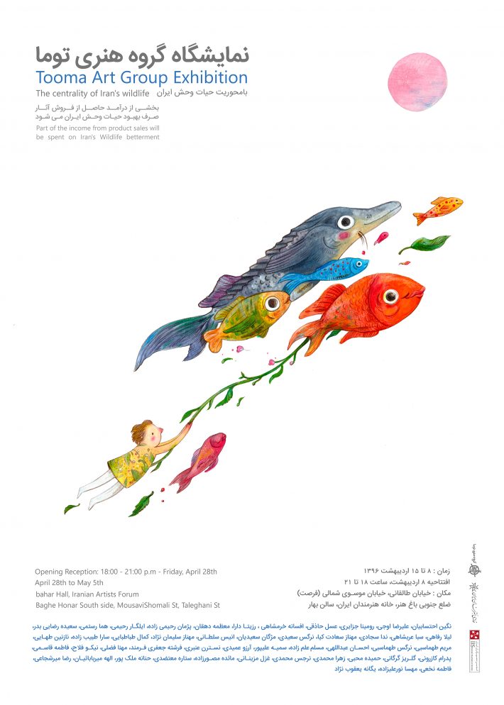 نمایشگاه گروه هنری توما با موضوع خاص حیات وحش ایران برپا می شود. این نمایشگاه با حضور 44 هنرمند و با همکاری انجمن تصویرگران ایران در سالن بهار خانه هنرمندان ایران از هشتم اردیبهشت الی 15 اردیبهشت96 دایر خواهد بود. علاقمندان جهت بازدید می توانند به آدرس: در خیابان طالقانی، خیابان فرصت (موسوی) شمالی، ضلع جنوبی پارک هنرمندان (باغ هنر) سالن بهار مراجعه نمایند.