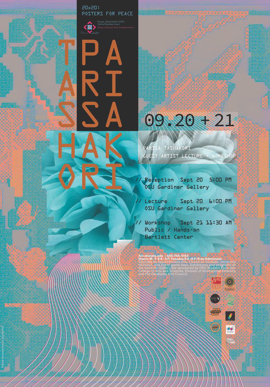 نمایشگاه 20*20 پوستر برای صلح که به همت زهرا پاشایی و پویا جهانشاهی به صورت همزمان در باغ موزه قصر تهران و گالری گاردینر ایالت اوکلاهاما امریکا آغاز به کار کرده بود با سخنرانی و نمایش آثاری از پریسا تشکری در بیست سپتامبر و با برگزاری ورکشاپ پریسا تشکری در 21 سپتامبر به کار خود پایان خواهد داد.