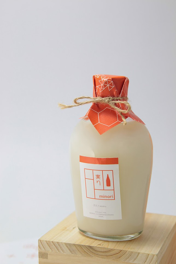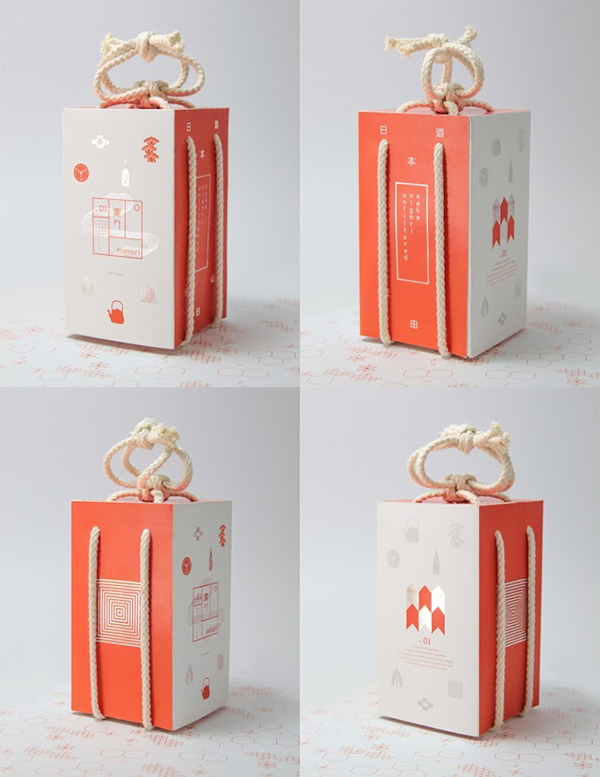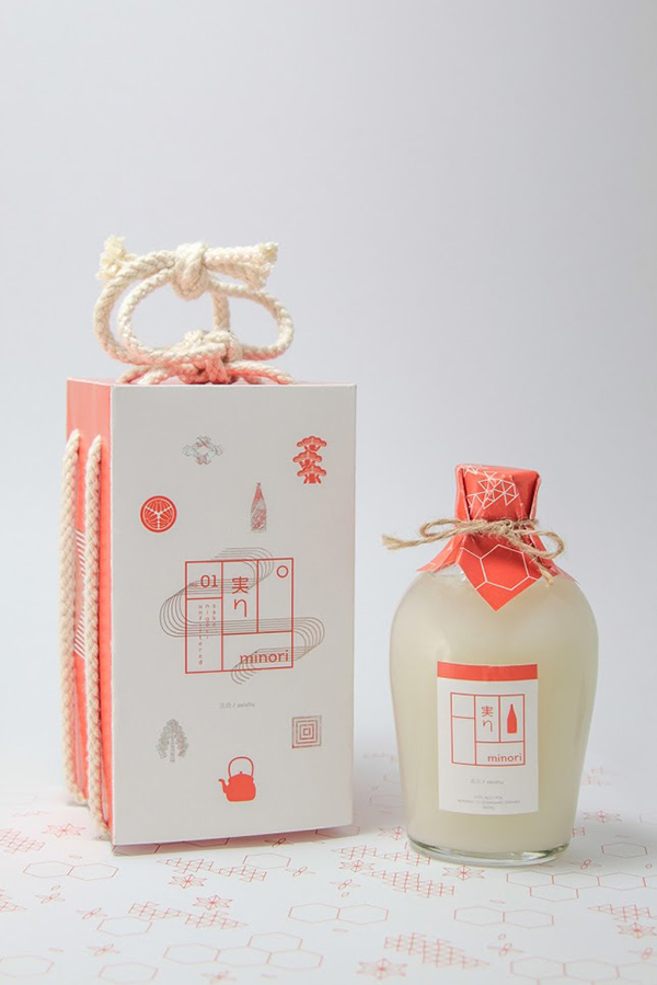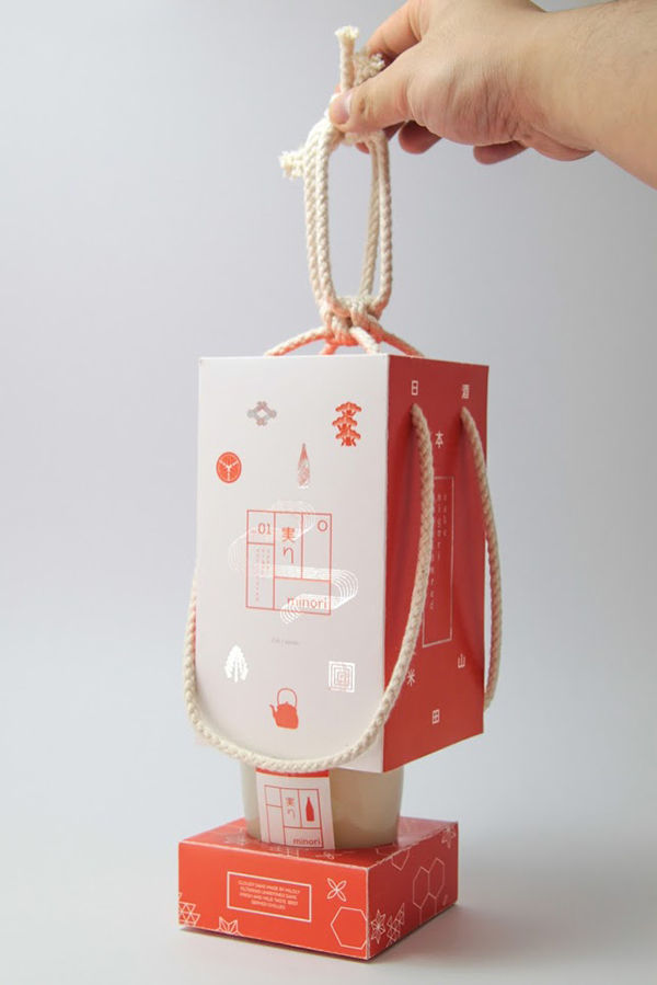 بسته بندی‌ نوشیدنی‌های سنتی ژاپنی‌‌ با نام «Minori Sake» با حال و هوای فرهنگ ژاپن طراحی شده است. در این برند که در زبان ژاپنی به معنای «محصول» یا «برداشت کردن محصول» است با استفاده از دیزاین مینیمال و رنگ قرمز و نیز بهره‌گیری از سمبل‌های کوچک روی بسته‌ها سعی شده تا نشان و احساسی از فرهنگ ژاپنی روی بسته ها ایجاد شود. همچنین طنابی که برای باز کردن بسته استفاده شده، در هنگام بازکردن بسته بندی حس جالبی به مشتریان انتقال می‌دهد. این پروژه توسط يك دانشجوی سال دوم دانشگاه RMIT استرالیا انجام شده است.