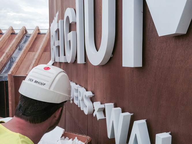 استودیو Soon نماینده‌ی بلژیک در نمایشگاه بین‌المللی میلان 2015 (Expo Milano) است که به مدت 184 روز، با حضور 148 کشور، از 1 ماه می تا 31 اکتبر سال جاری (به‌ مدت 6 ماه) در مساحتی به بزرگی 1.1 میلیون متر مربع در حال برگزاری است و بطور میانگین در حدود 20 میلیون نفر بازدیدکننده دارد. هویت بصری، طراحی محیطی و گرافیکی غرفه بلژیک بر عهده این استودیو بوده است. ایده آنها برای هویت بصری این غرفه، استفاده از اعداد بزرگ و علائم نگارشی بوده است که تمامی آنها، در یک نقطه‌، مشترک هستند و یک چیز را می‌خواهند نشان دهند و آن «نمایشگاه جهانی2015 در میلان» است. اکثر علائم نگارشی و تایپی بکار رفته در نمایشگاه با دست ساخته و نصب شده‌اند. در ادامه همراه روزرنگ باشید تا به تماشای تصاویر مربوطه برویم: