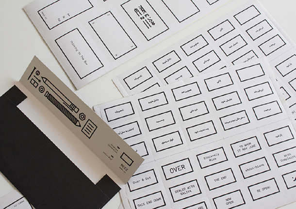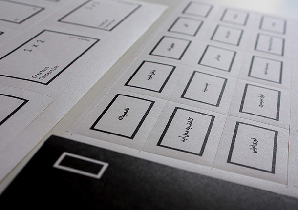 – طراحی یا به نوعی هماهنگسازی برچسبها در چند سایز که به کلمات مختلف مجهز هستند و بنا بر موقعیت و مناسبت میتوانند استفاده شوند. چه توسط میز چه بوسیله افراد دیگر. چه روی اوراق و چه چسباندن آنها بر درودیوار شهر. (اشاره به استیکرهای شهری میز که پروژهی است که همزمان با طراحی هویت آن و اضافه کردن شعارها و پیامهای مختلف توسط محمد معتمدی در فضای شهری در جریان است)
