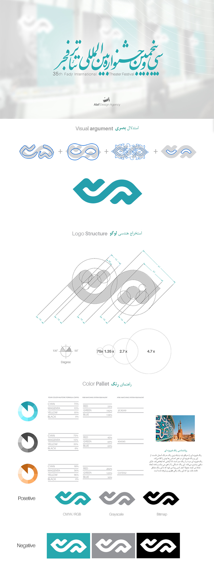 تیم طراحی به دنبال ارتباط های بصری بیشتری در نشانه 35 گشتند و با تغییراتی در ساختار هندسی، فرم را طوری طراحی کردند که نماد کمدی و تراژدی (لبخند و غم) باشد، در همه ی مراحل سعی شد که فرم طراحی شده با حفظ خوانایی به موتیف های اصیل ایرانی بسیار نزدیک باشد و علاوه بر این نشانه ای برای بخش جدید جشنواره (به علاوه فجر) نیز طراحی گردید.