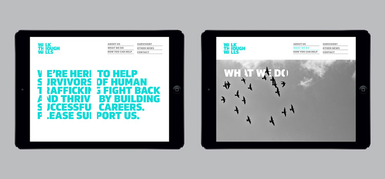 موسسه خیریه Walk Through Walls که در زمینه فراهم سازی فرصت های شغلی برای قربانیان قاچاق انسانی و کمک به آنها برای فائق آمدن بر مشکلات پیش رویشان فعالیت دارد هویت بصری خود را با کمک استودیوی انگلیسی Mark Studio طراحی و اجرا کرد.