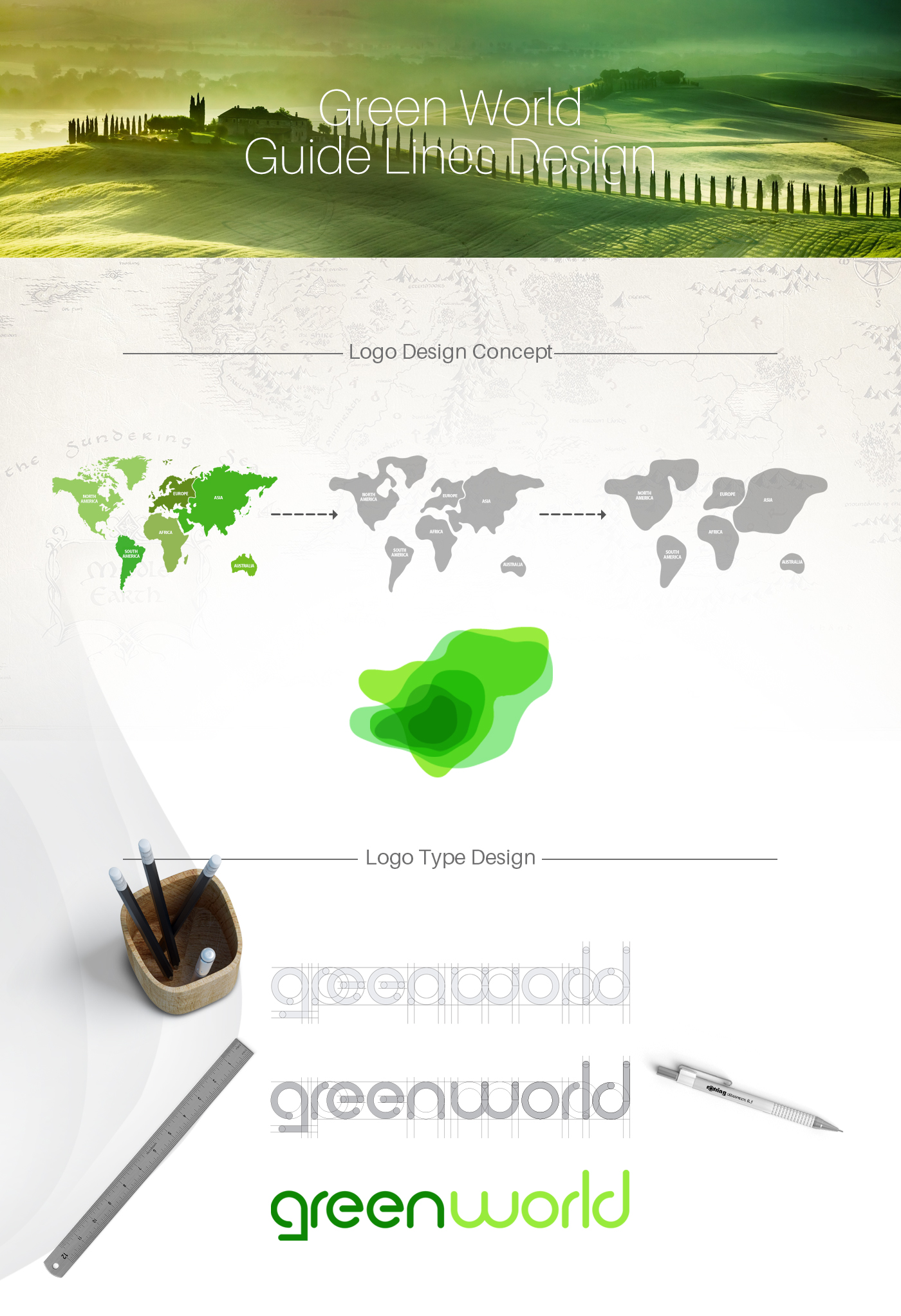 کانسپت طراحی لوگو بر اساس نام این مجموعه ایده پردازی و با توجه به معنای آن (دنیای سبز) تمام قاره های جهان به صورت مجزا آنالیز و مرحله به مرحله ساده شدند، تا جایی که به فرم های بسیار منعطف و ساده رسیدیم. این فرم ها بر روی هم منطبق و با ترکیب و تاثیر رنگی آنها بر یکدیگر کانسپت اصلی لوگو شکل گرفت.