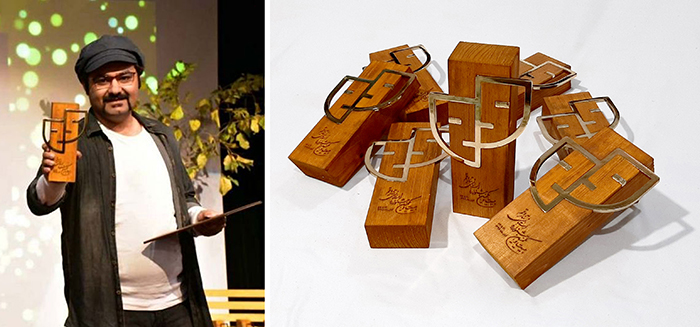 تندیس جشنواره برگرفته از لوگو جشنواره طراحی و ساخته شد که با متریال فلز با آبکاری طلایی و چوب توسط محمود اسدی متین تولید شد.