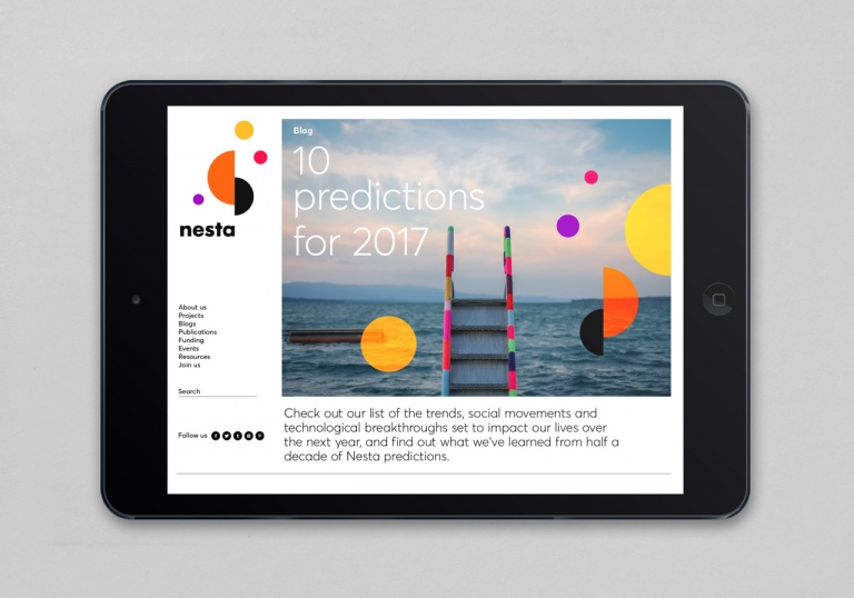یکی از اعضای آژانس تبلیغاتی پنتاگرام Pentagram مارینا ویلر Marina Willer هویت بصری جدیدی برای موسسه خیریه نستا Nesta در انلگستان براساس یک اکوسیستم رنگارنگ که اشکال مختلفی روی آن شناور هستند طراحی کرده است.