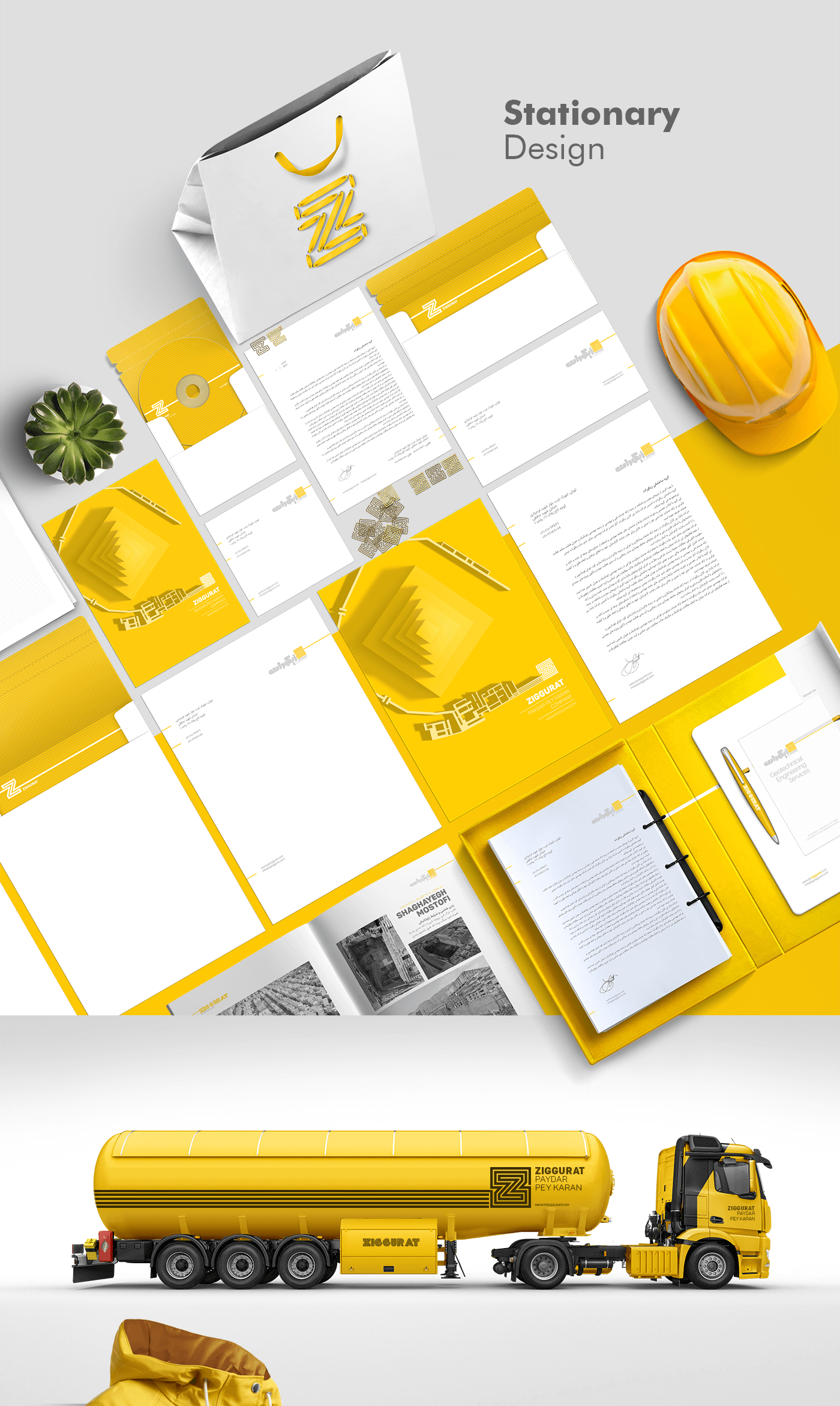 گروه ساختمانی ” زیگورات” در زمینه ارائه خدمات فنی و مهندسی ژئوتکنیک و عمران فعالیت دارد و در سال 1396 اقدام به طراحی هویت بصری در مجموعه طراحان ” الف” نمود.