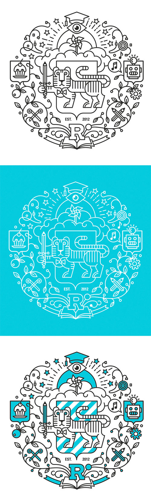 ایدهی اصلی این مجموعه، استفاده از يك ببر به عنوان نماد و سمبل كتاب فروشى، اما در سبک نشانهی دانشگاه بوده است. در فروشگاه بخشهای مختلفی وجود دارد که هر یک با حالات مختلفی از چهرهی ببر ارائه شدهاند. دیگر آیکونها مستقیماً با توجه به ماهیت هر بخش طراحی شده است.