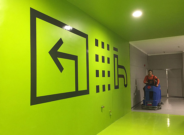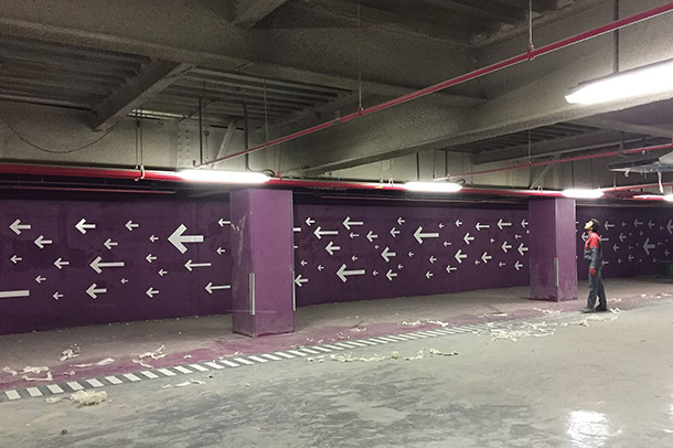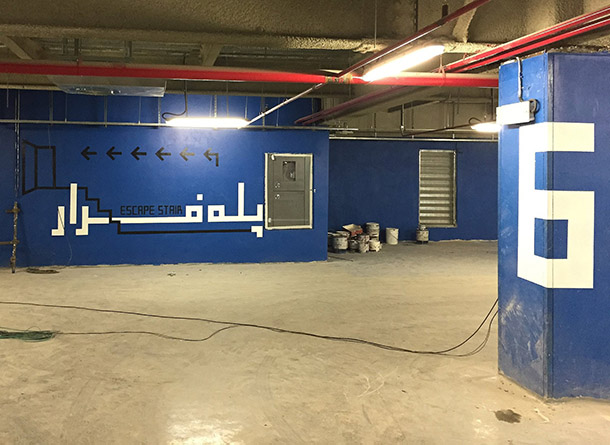 نكته ى ديگر تغيير نگرش مردم نسبت به ذهنيت مركز خريد بود. همه از مركز خريد ذهنيتى شلوغ، درهم ريخته و گيج كننده دارند. سردرگمى در راهروها و پاركينگ طبقاتى از ديگر مشكلات مراكز خريد است. ما سعى كرديم با نزديك شدن به معمارى و استراتژى برند، فضايى استاندارد و راحت را تعريف كنيم. مثلا براى راهروها و خروجى هاى اضطرارى، تونل ها و مسيرهاى فرعى از رنگ هاى مخصوصى استفاده كرديم. با طراحى تايپ فيس سعى در ارتباط راحت تر با مخاطب داشتيم و براى هر طبقه از پاركينگ رنگ خاصى را تعريف كرديم كه با عميق تر شدن طبقات، رنگ ها هم سنگين تر مى شود.