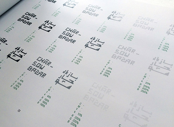 مساله بعدى گرافيك محيطى چارسو بود. در ايران معمولا روال كار به اين صورت است كه بعد از پايان كامل مراحل معمارى، از تيم طراحى گرافيك خواسته مى شود كه لوگو طراحى كرده يا فضاهاى خالى را با پيكتوگرام و ديزاين مرتبط پر كند كه البته كار درستى نيست.