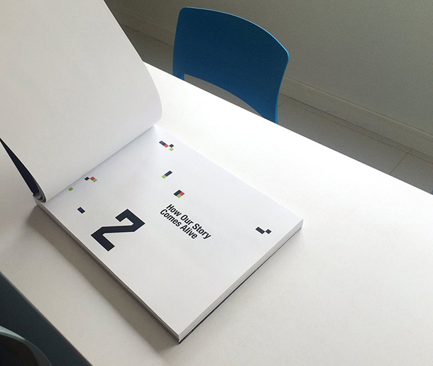ما از خاصيت معمارى مركز شروع كرديم كه زبان اصلى اش فرم مستطيل بود. استفاده از رنگ هاى درخشان و الهام از خط كوفى بنايى كه بسيار شبيه به فونت هاى ديجيتال بود و از لحاظ فرمى زبان نزديكى به فضاى مدرن داشت، برندينگ را وارد مرحله ى تازه اى كرد.