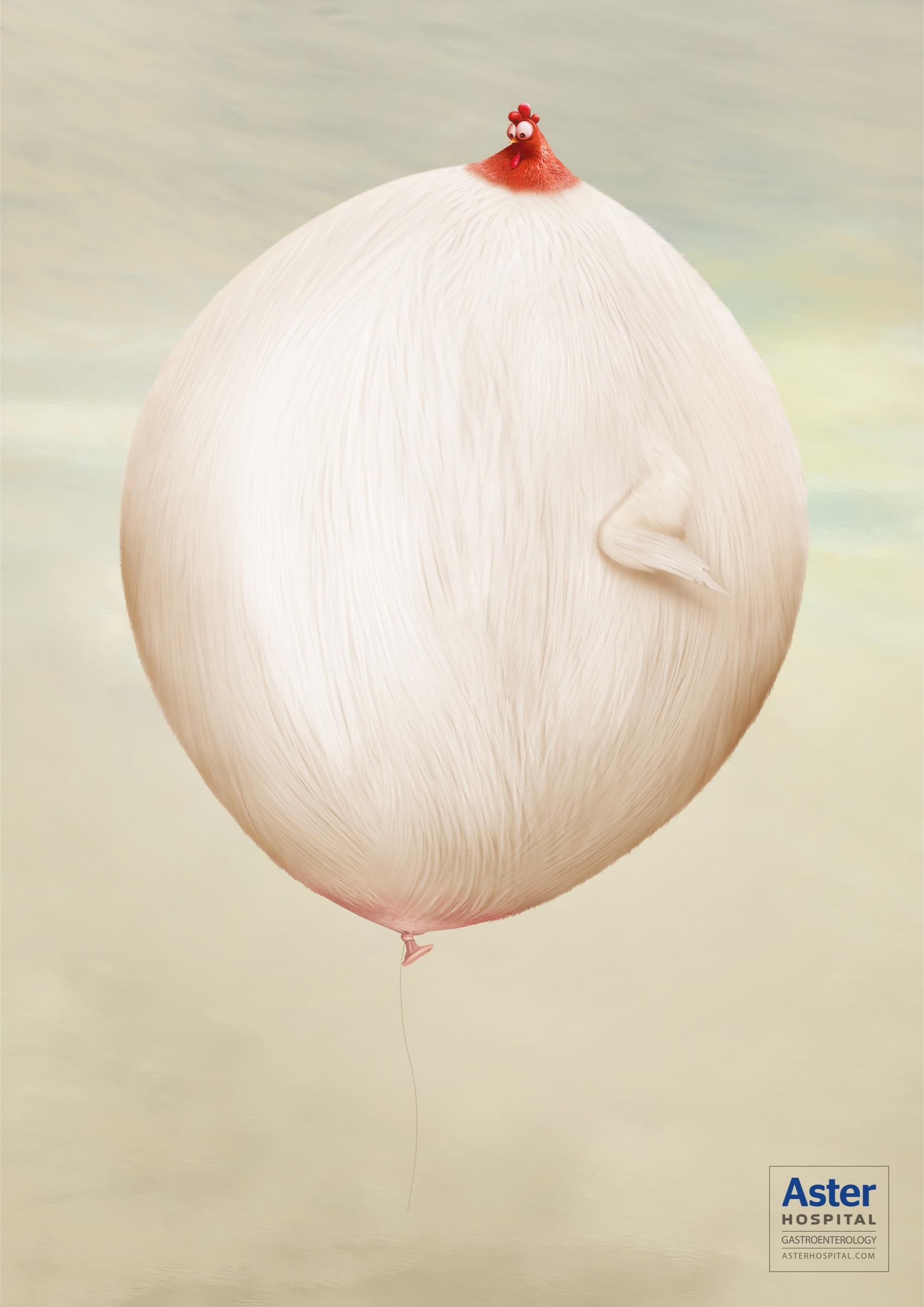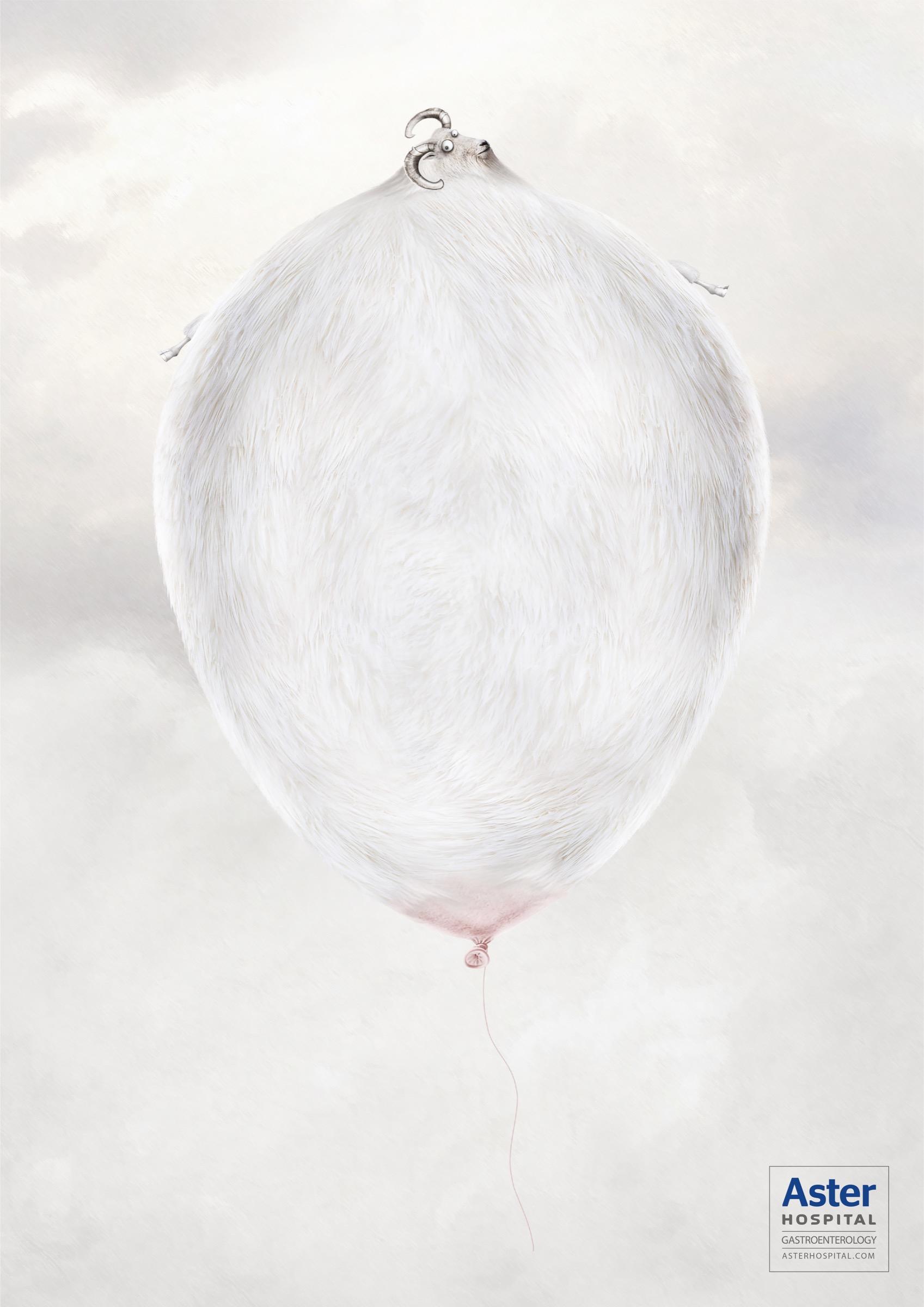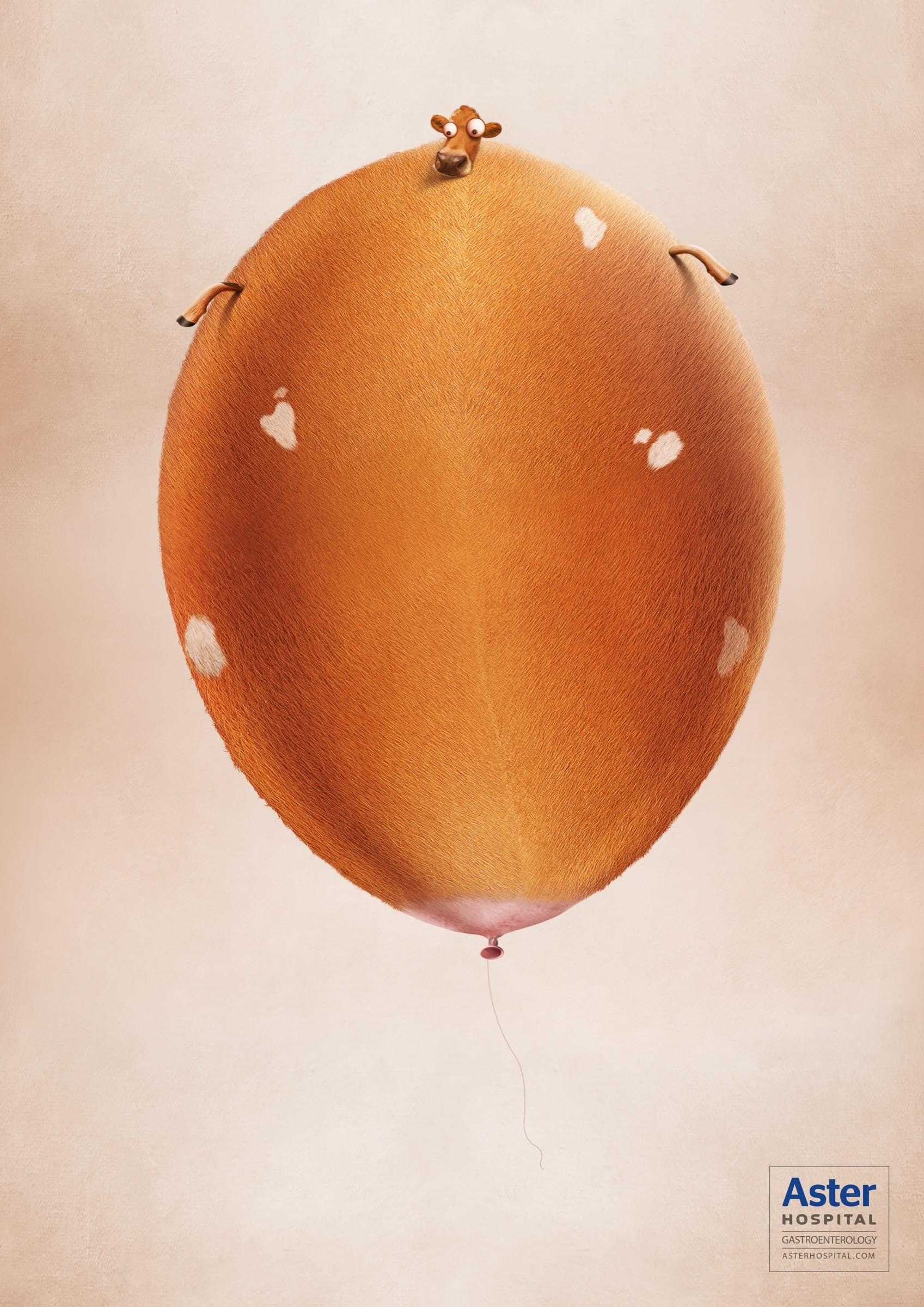 در امارات، از هر پنج نفر یک نفر به خاطر چاقی و تغذیه نامناسب از مشکلات معده رنج می بردکه نفخ شکم، آشکارترین نشانه آن است. این بیماری با تولید گاز، شما را در وضعیت های ناگواری قرار می دهد. اگر این مسئله فورا درمان نشود، می تواند به زخم معده، التهاب معده، بیماری بازگشت اسید به مری (GERD)، سرطان معده و سایر مسائل پیچیده منجر شود. از این رو بیمارستان آستر(Aster ) با همکاری استودیوی The Classic Partnership تصمیم گرفت تا عموم مردم را به شیوه ای متفاوت و فانتزی از این بیماری آگاه سازد. آنها پوسترهایی چاپ کردند که روی آنها این شعار درج شده بود: « اجازه ندهید که مواد غذایی، معده شما را با گاز پر کنند»