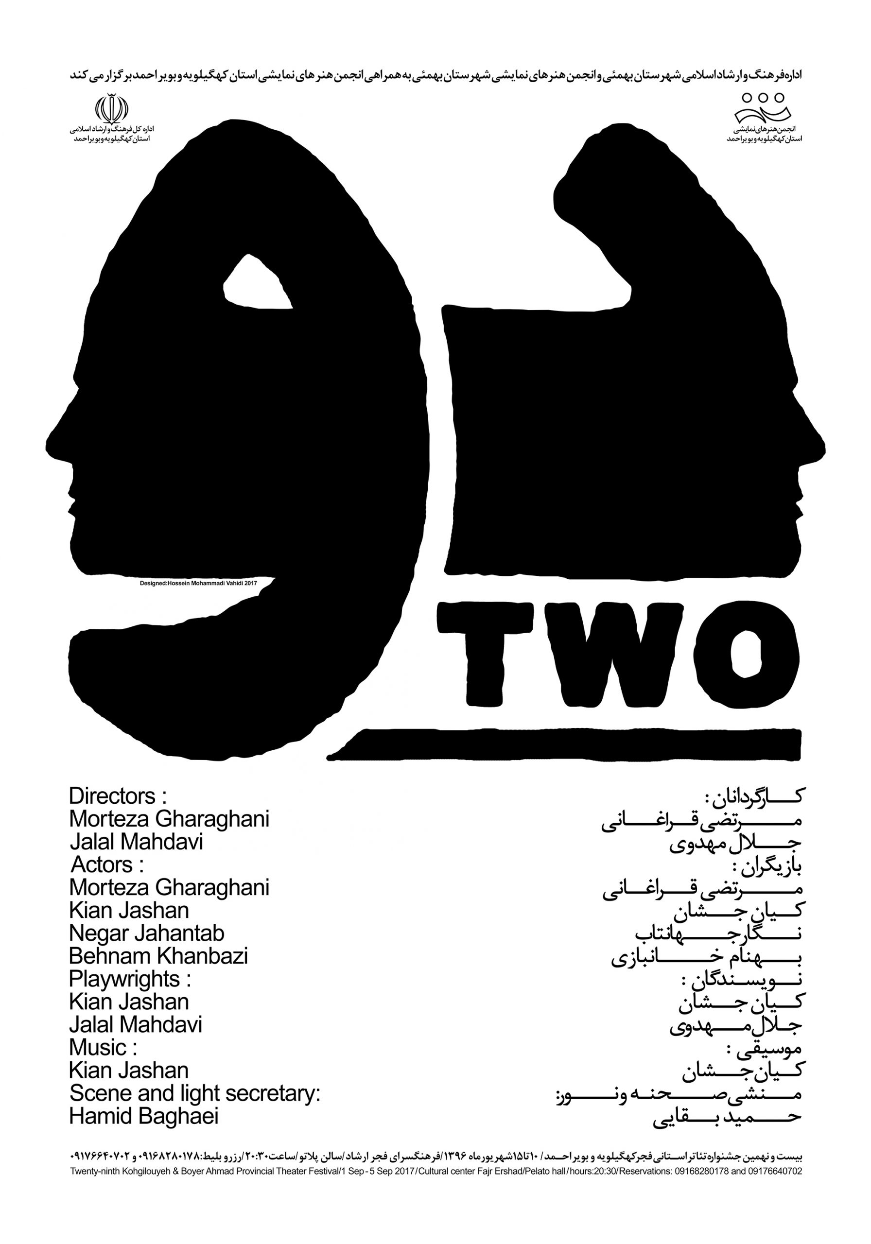پوستر تئاتر دوT توسط حسین محمدی وحیدی طراحی و اجرا شده است. این نمایش به کارگردانی  جلال مهدوی و مرتضی قراغانی تهیه شده است و کیان جشان ، نگار جهانتاب ، بهنام خانبازی و مرتضی قراغانی بازیگران آن را تشکیل می دهند.