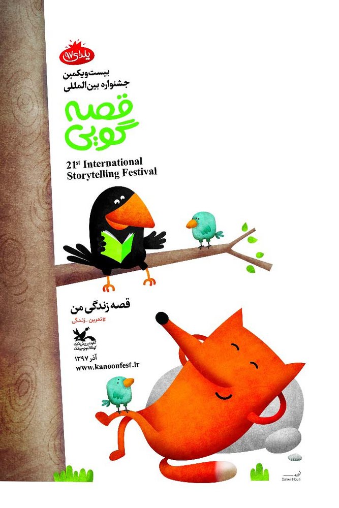پوستر بیست و یکمین جشنواره بین‌المللی قصه‌گویی کانون پرورش فکری کودکان و نوجوانان با طرحی از داستانِ معروف و درسی «روباه و زاغ» منتشر شد.