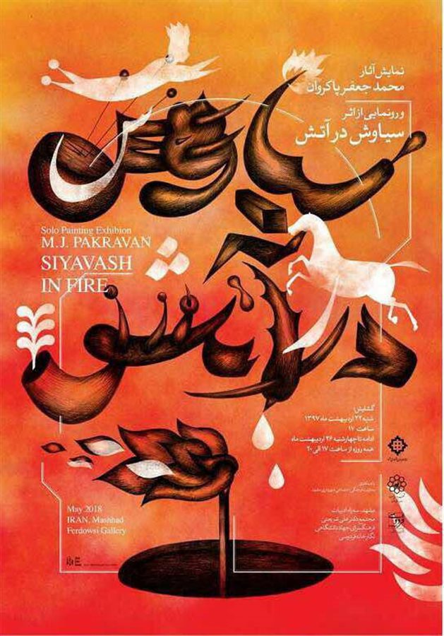 پوستر «سیاوش در آتش» نمایش آثار محمد جعفر پاکروان توسط استودیو چپ چین طراحی شده است. این برنامه از 22 اردیبهشت 1397 لغایت 26 اردیبهشت در نگارخانه فردوسی مشهد جهت بازدید عموم دایر است.