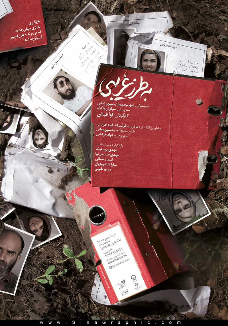 پوستر نمایش «به طرز غریبی» با طراحی گرافیک سینا افشار و کارگردانی آوا فیاض به صورت مجازی رونمایی شد.