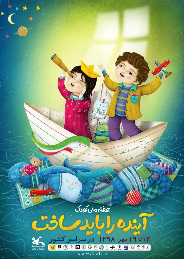پوستر هفته ملی کودک با شعار آینده را باید ساخت توسط محسن میرزایی طراحی شده است .