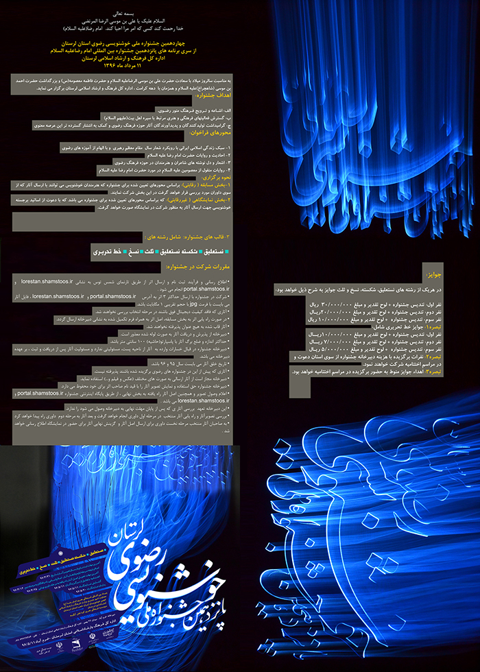 پوستر پانزدهمین جشنواره خوشنویسی ملی رضوی