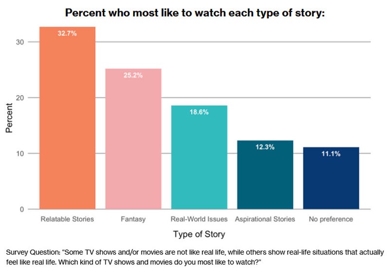 گرچه انیمیشن محبوب است، اما نوجوانان بیش از هر چیز به داستانهای واقعگرایانه و قابل همذاتپنداری تمایل دارند. پژوهش نشان میدهد در مقایسه با سال گذشته، علاقه به روایتهای «واقعی و شبیه زندگی خودشان» ۳۵/۳ درصد افزایش یافته است.